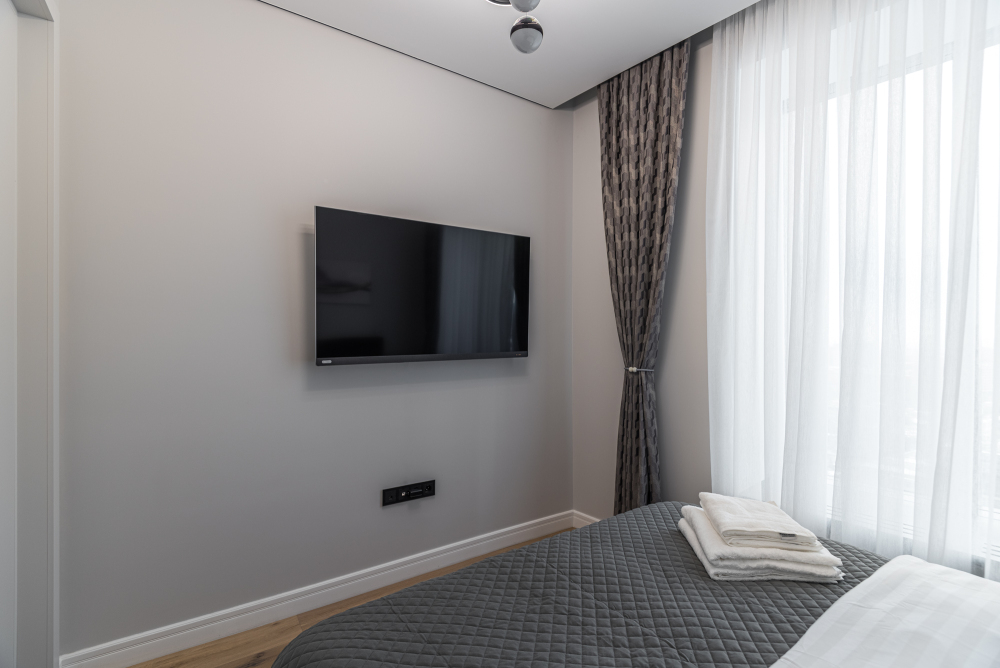 - Просторная гостиная с удобным диваном и телевизором для Вашего комфорта.
