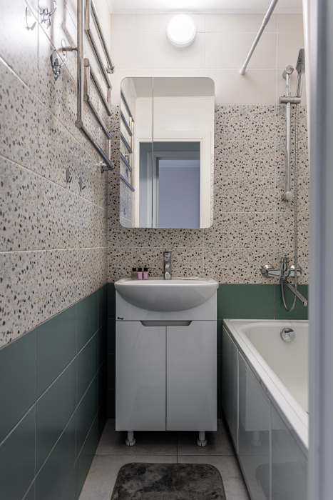 - Просторная гостиная, 2 спальни с двуспальными кроватями (double), полностью оборудованная кухня, ванная с ванной и душем.