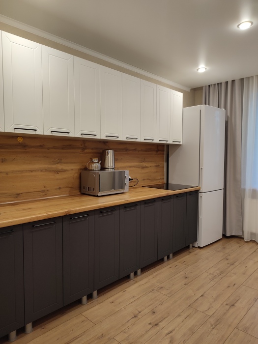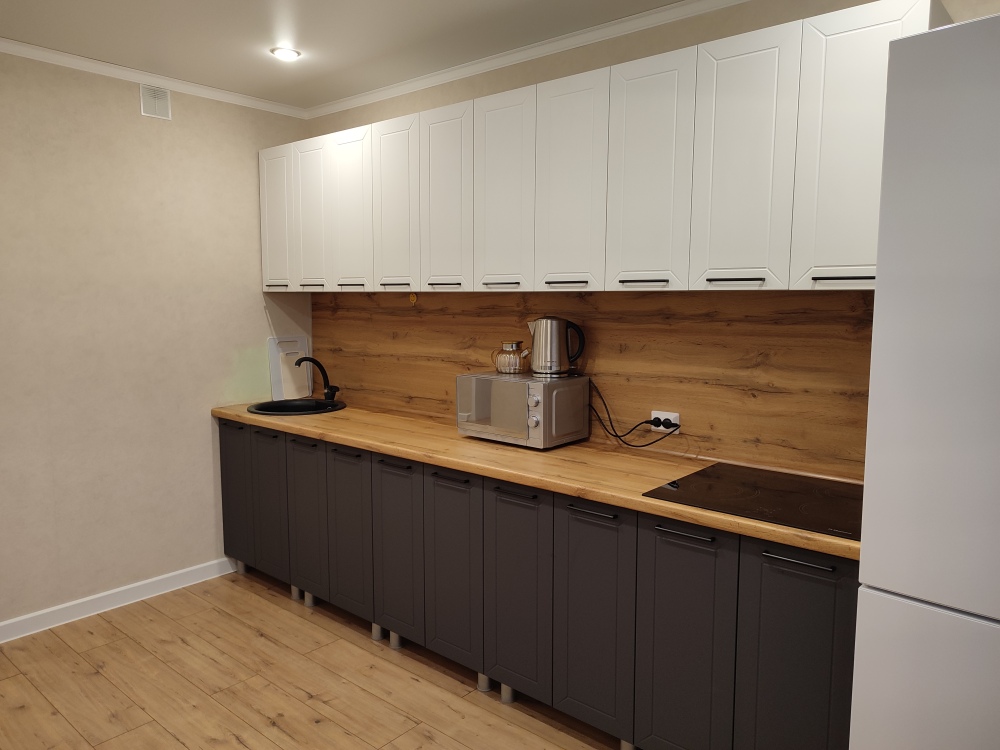 - оборудованная кухня (холодильник, печь СВЧ, электрочайник, посуда, приборы, стиральная машина);