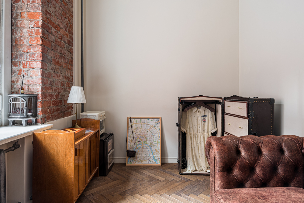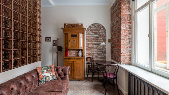 Апартаменты рядом с Лубянкой. Остановитесь в уникальной квартире - это не просто жильё, а возможность погрузиться в дух старой Москвы. Интерьер выполнен в винтажном стиле: кирпичная кладка, высокие потолки, антикварная мебель и элементы декора создают особую атмосферу, которую особенно ценят гости, ищущие необычные места с характером.