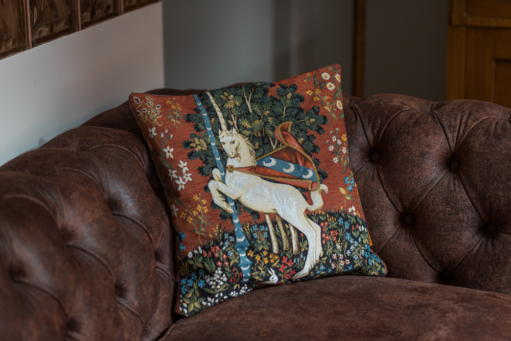 - Историческое здание с высоким потолком.