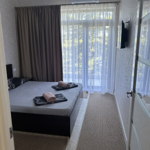 Номера на 2-4 человека оборудованы двухспальными кроватями, большими диванами, кондиционерами, телевизорами, кабельным ТV, бесплатным Wi-Fi, новой современной мебелью. В каждом номере большая кухня со всеми кухонными принадлежностями, ванная комната с душем, банные полотенца. Большой балкон (с видом на море,горы) со столиком и креслами. По желанию организуем трансфер.