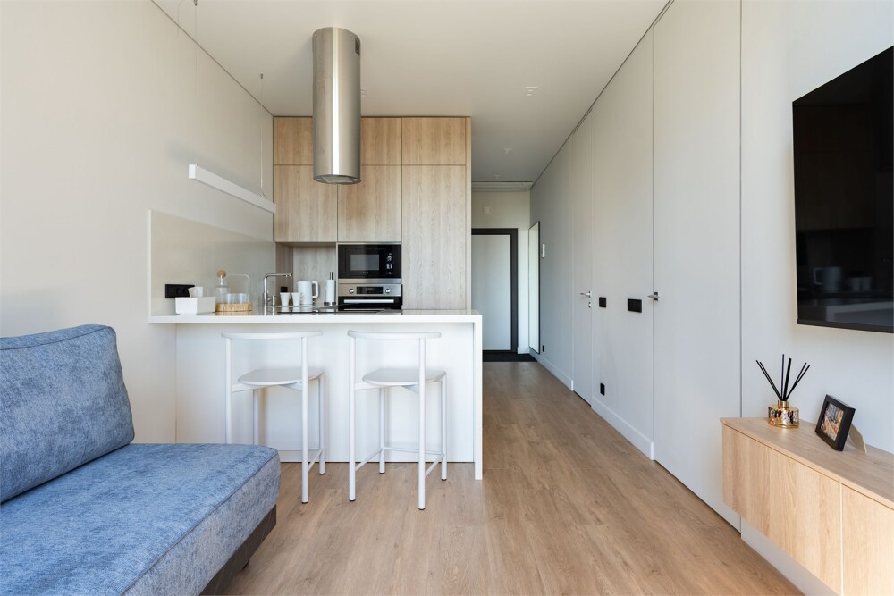 - Однокомнатная квартира с кухней-гостиной и отдельной спальней для двоих гостей площадью 41 м2.