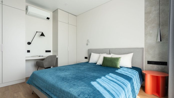 - Удобная двуспальная кровать шириной 160 см в спальне.