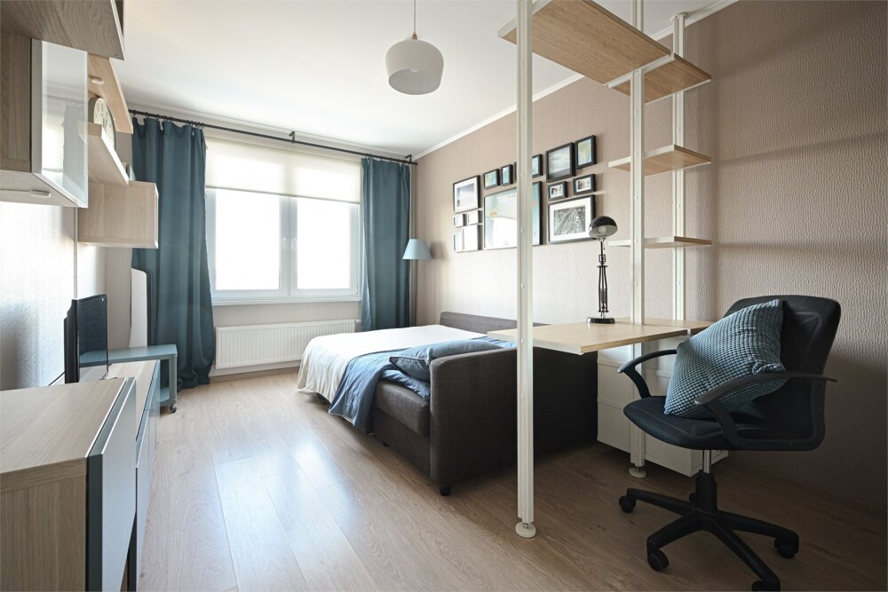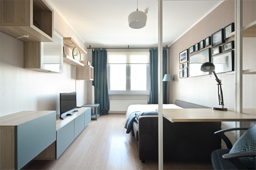 Однокомнатная квартира в Красногвардейском районе с видом на панораму Петербурга и Смольный собор.