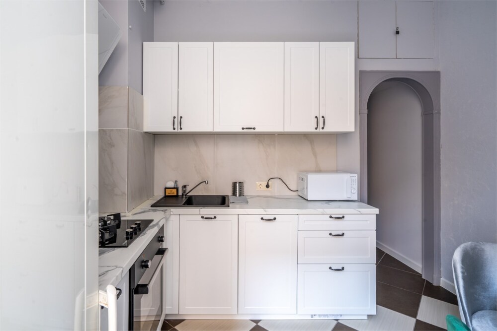 - Кухня: плита, микроволновка, чайник, холодильник.