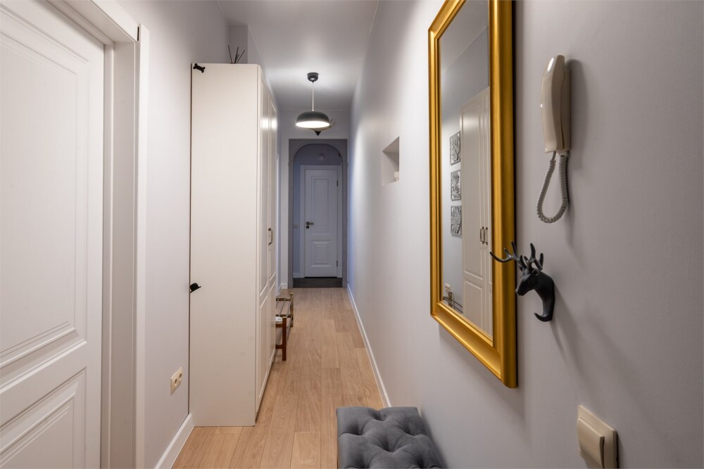 - Удобная двуспальная кровать формата King Size в спальне, диван на двоих в гостиной.
