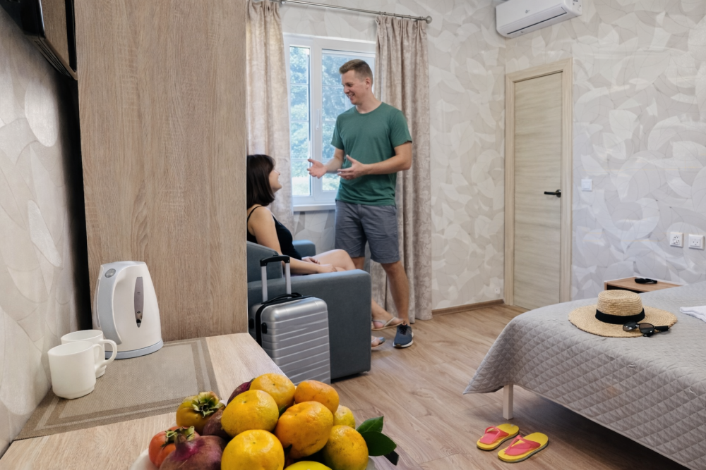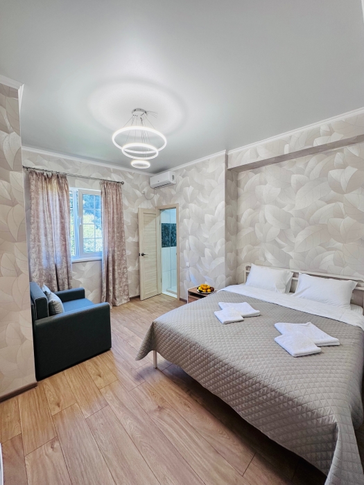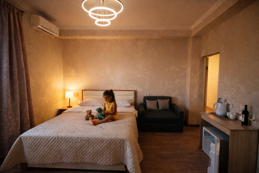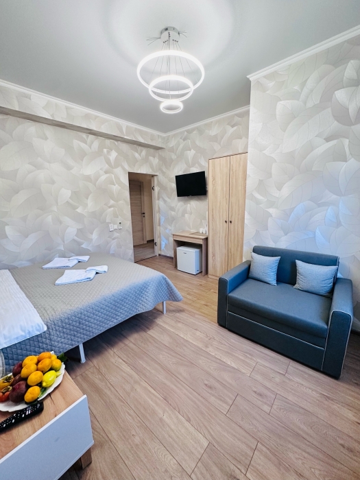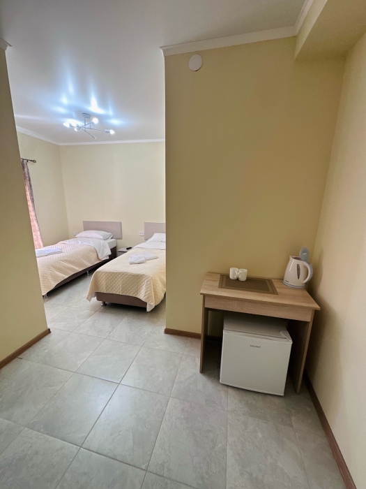 Помимо стандартных 1-комнатных номеров, есть 2-комнатные семейные номера с изолированными спальнями.