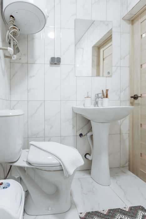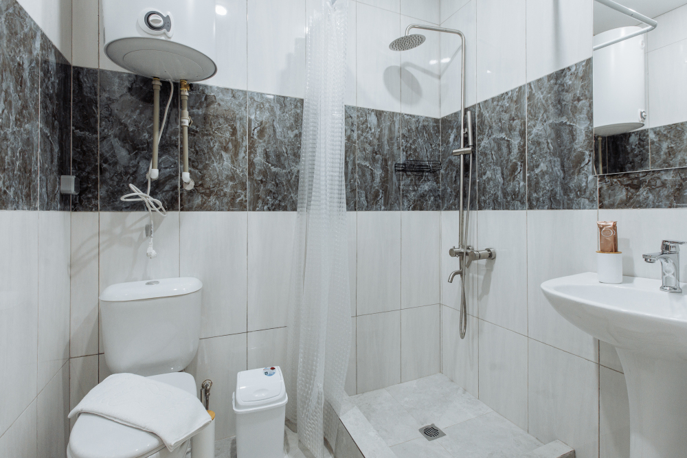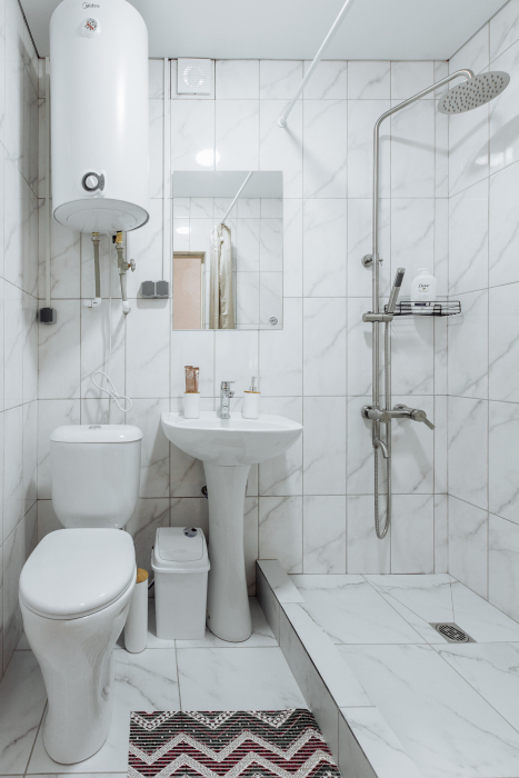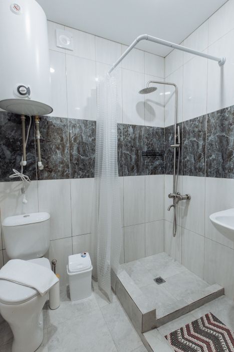 Ванная комната с душевой кабиной , туалетом