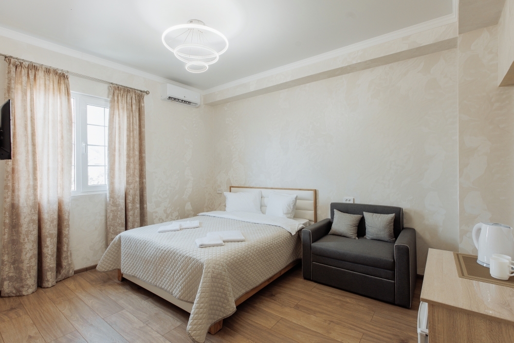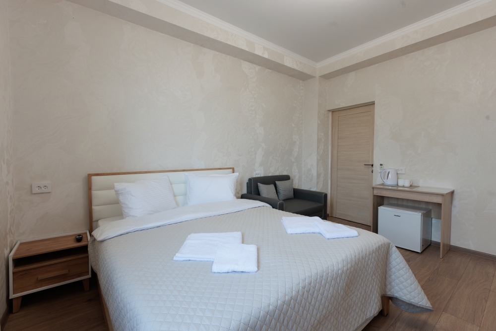 Номера оборудованы феном, мини-холодильником, электрическим чайником, тапочками, набором для чаепития, бокалами, сплит-системой, душем и туалетом, установлены москитные сетки на окнах.