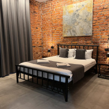 В комнате спокойно, уютно и тепло, шторы блэкаут. Просторная душевая с регулируемым теплым полом и средствами гигиены (мыло, шампунь, зубная паста и щетка, туалетная бумага), удобный фен для сушки волос, банные полотенца, полотенца для рук, коврики для ног, тапочки. Круглый стол с венскими стульями, мини-холодильник, чайник, чашки, чайные ложки, бокалы, чай, вода, отпариватель. Большая удобная кровать с ортопедическим матрасом. Качественное белое белье премиум-класса. Высокоскоростной безлимитный Wi-fi, большой телевизор с функцией Смарт-ТВ, ниша для чемоданов, вешалки. Бризер с регулированием скорости притока воздуха. Кровать, вазоны для уличных цветов и кованые карнизы выполнены в Петрозаводской кузнице. Картины известного карельского художника Егора Кукушкина.