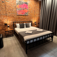 В комнате спокойно, уютно и тепло, шторы блэкаут. Просторная душевая с регулируемым теплым полом и средствами гигиены (мыло, шампунь, зубная паста и щетка, туалетная бумага), удобный фен для сушки волос, банные полотенца, полотенца для рук, коврики для ног, тапочки. Круглый стол с венскими стульями, мини-холодильник, чайник, чашки, чайные ложки, бокалы, чай, вода, отпариватель. Большая удобная кровать с ортопедическим матрасом. Качественное белое белье премиум-класса. Высокоскоростной безлимитный Wi-fi, большой телевизор с функцией Смарт-ТВ, ниша для чемоданов, вешалки. Бризер с регулированием скорости притока воздуха. Кровать, вазоны для уличных цветов и кованые карнизы выполнены в Петрозаводской кузнице. Картины известного карельского художника Егора Кукушкина.