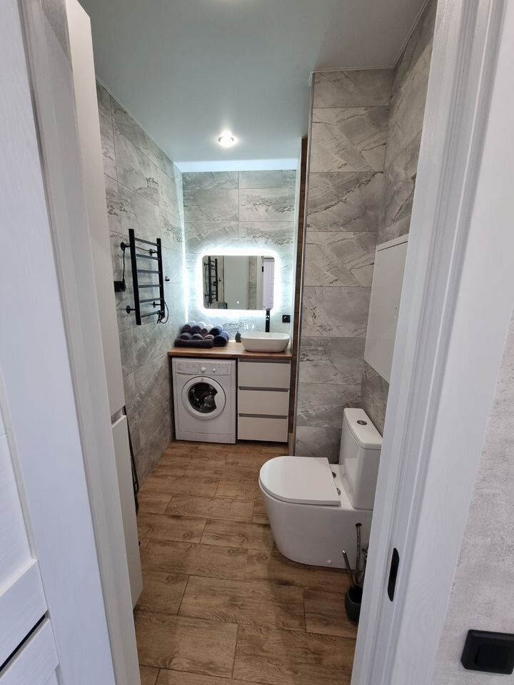 - ванная комната с гелем для душа, шампунем, мылом, зубным набором, свежими полотенцами и тапочками;