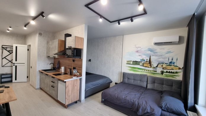 В студии полноценно разместятся 4 человека.