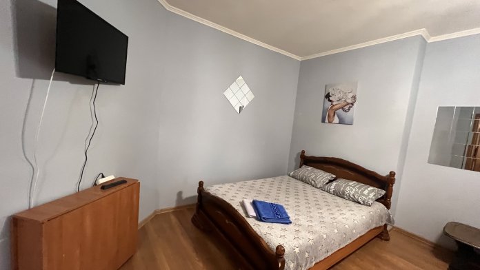 Двуспальная кровать, диван, Smart TV телевизор, Wi-Fi, полностью оборудованная кухня: плита, чайник, холодильник, вся необходимая посуда и принадлежности. Стиральная машина, утюг, фен. Чистое постельное бельё.