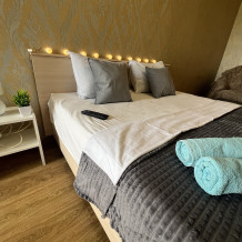 Двуспальная кровать, раскладной диван, Smart TV телевизор, Wi-Fi, полностью оборудованная кухня: плита, чайник, холодильник, вся необходимая посуда и принадлежности. Стиральная машина, утюг, фен. Чистое постельное бельё.