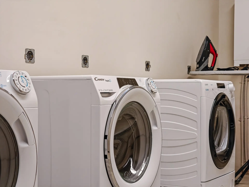 В общем доступе имеется стиральная машина, сушилка для белья, гладильная доска, утюг.