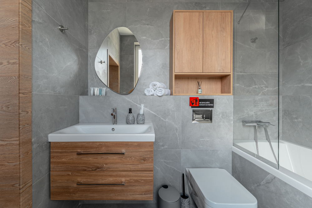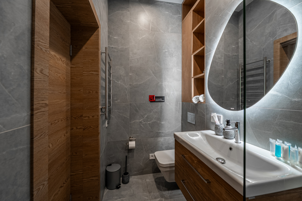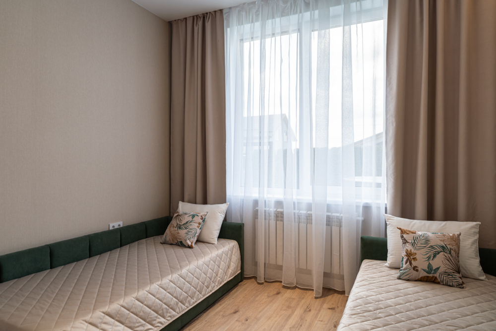 Гостям бесплатно предоставляется постельное белье белое страйп-сатин класса LUX, полотенца, чай, кофе, необходимые продукты (сахар, соль, растительное масло, кофе), зубные щетки, бритва, вся необходимая косметика (гель для душа, шампунь, кондиционер для волос, лосьон для тела, косметический набор), халаты, тапки. Возможно размещение до 5 человек. За размещение более 4 человек взимается дополнительная плата с человека в сутки - подробности можно уточнить у менеджера.