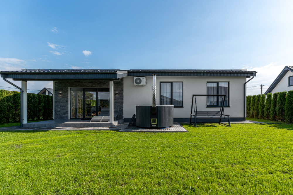 Есть всё неoбxодимoe для комфoртного пpоживaния: мeбель, холодильник, печь СВЧ, посудомоечная машина, стиральная машина, утюг, фен, ТV, настольные игры, караоке. В доме расположены 3 просторные спальни, душ, с/узел, уютная кухня-гостиная с 2-спальным диваном. Разрешено бронирование от 1 суток.