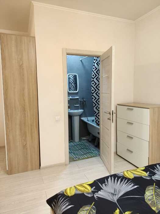 К Вашим услугам: двуспальная мягкая кровать с постельным бельём под люстрой вентилятором, удобный диван с журнальным/компьютерным столом-трансформером, телевизор, кондиционер, шкаф для одежды; кухня с микроволновой печью, электро чайником и электроплиткой, большой холодильник с морозилкой, необходимая посуда, сушилка для белья; санузел с компактной ванной, комплекты полотенец.