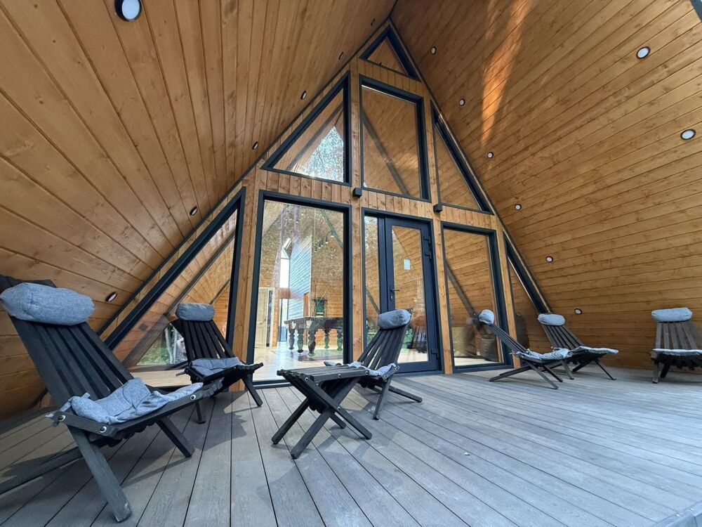 - Комфортная баня с бильярдом в стиле А-фрейм (120 м²) — просто мечта для любителей ! 6000 руб. за 2 часа