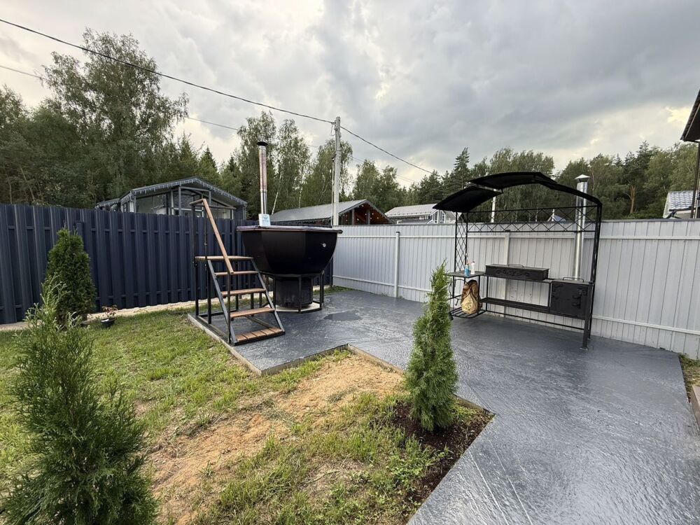 - Каждый дом оснащен собственным банным чаном и мангалом, чтобы вы могли наслаждаться отдыхом на свежем воздухе. Чан арендуется отдельно за 4000 руб. за 2 часа с добавками из еловых веток, трав и цитрусов — идеальный способ расслабиться!