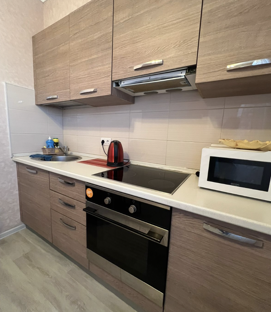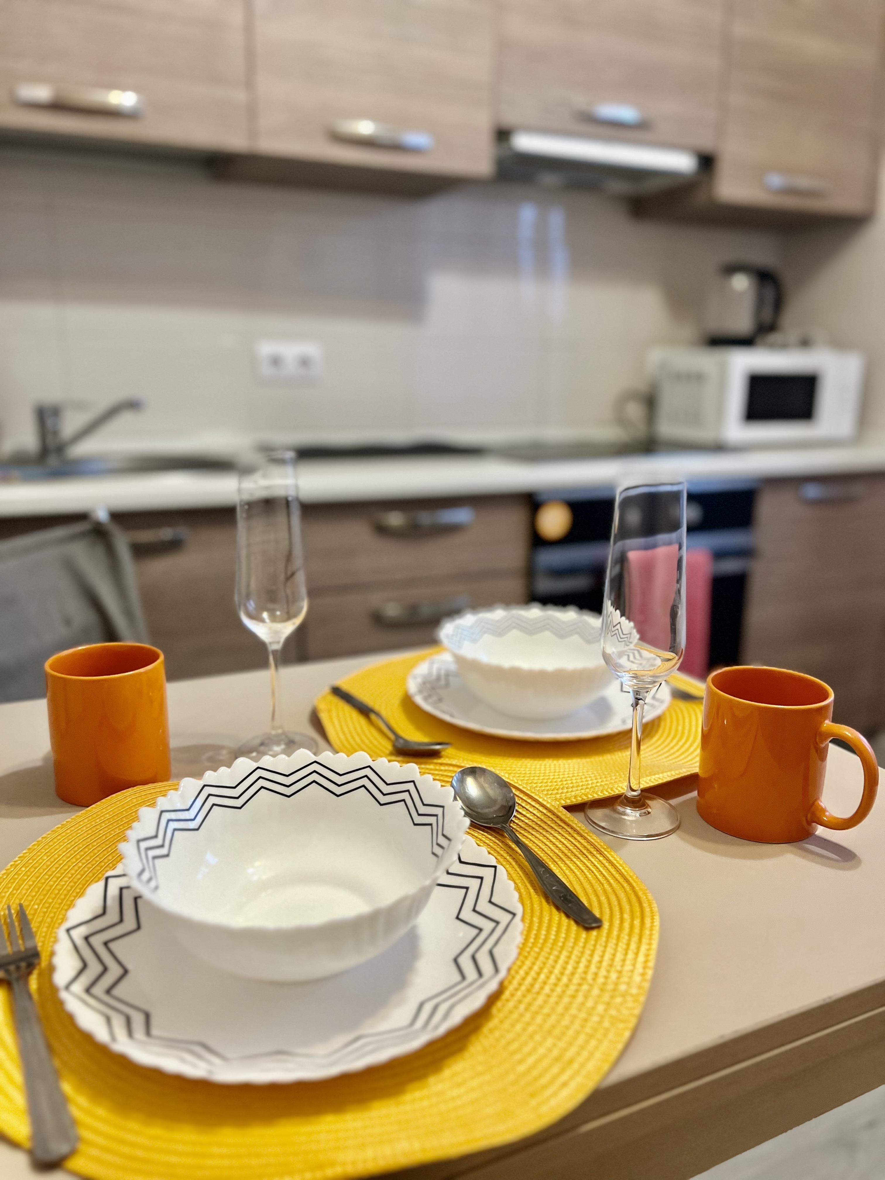 Двуспальная кровать, диван, Smart TV телевизор, Wi-Fi, полностью оборудованная кухня: плита, чайник, холодильник, вся необходимая посуда и принадлежности. Стиральная машина, утюг, фен. Чистое постельное бельё.