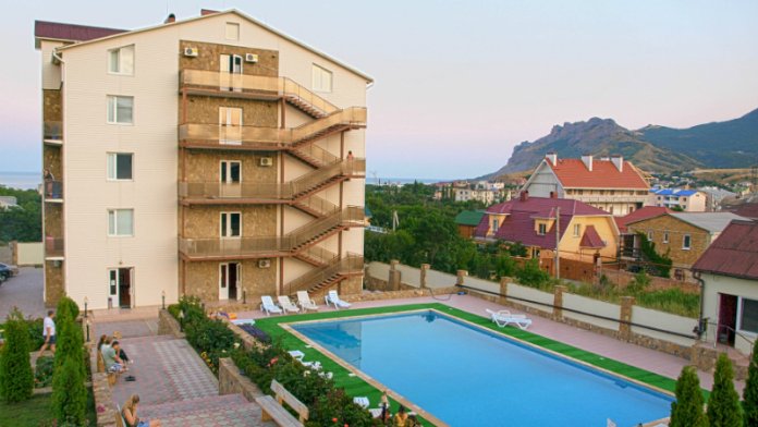 Гостевой дом «Европа» расположен в одном из известных курортов Крыма - поселок Коктебель. Пляжи с мелкой галькой, но есть и нежный песок в Тихой бухте. На территории оборудована площадка с мангалами для самостоятельного приготовления шашлыка. Номера с видом на море и горы. На 4-м этаже терраса для отдыха 100 кв. м. с панорамным видом на горы Кара-Даг и Мыс Хамелеон. Так же к услугам гостей кафе (домашняя кухня), беседка из натурального дерева, бассейн, сауна, настольный теннис, бильярд.