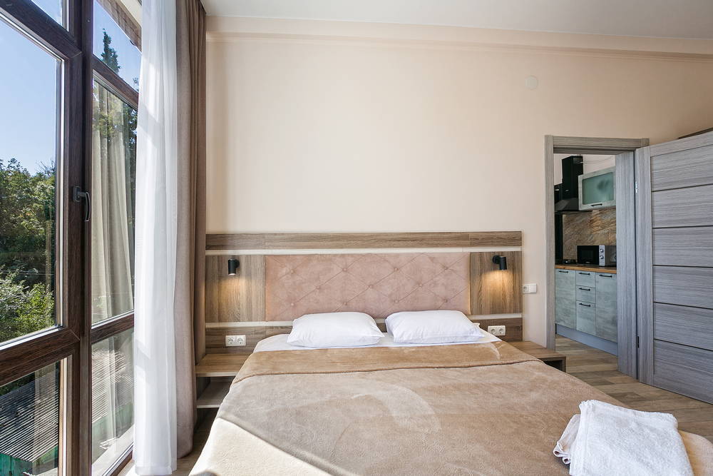 Два номера «Комфорт», 1-комнатные с балконами, расположены на 2 и 3 этажах, площадь 26 кв.м, гостей 2+1.