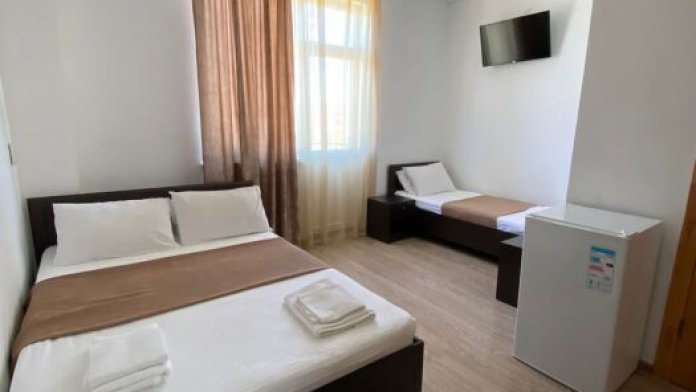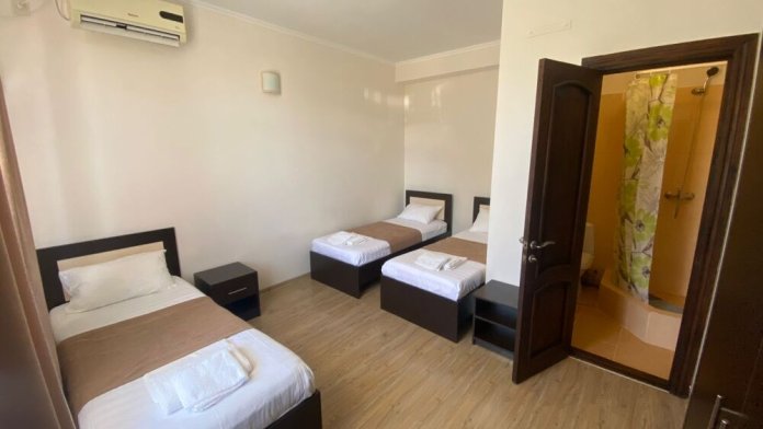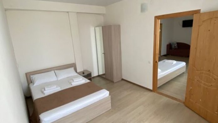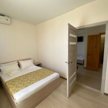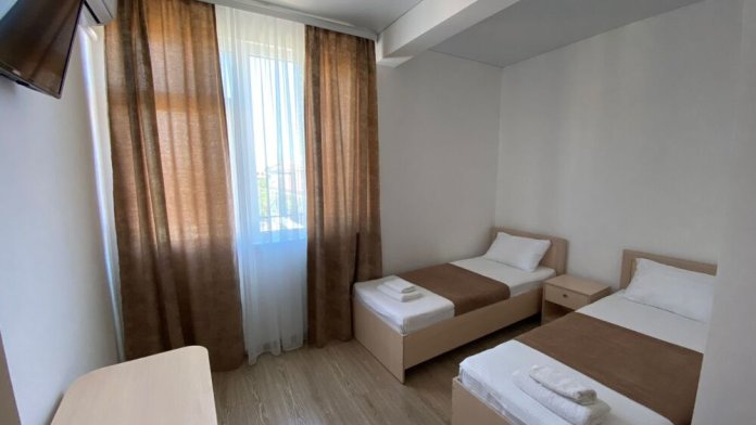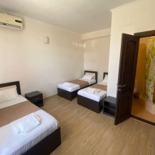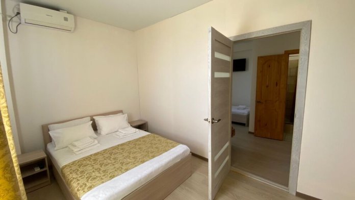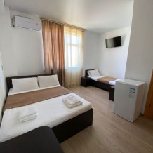 В гостевом доме просторные номера с новейшим ремонтом, в каждом из которых комфортабельная мебель, телевизор, кондиционер, холодильник, санузел, душевая кабина. На всей территории действует бесплатный Wi-Fi, бассейн с подогревом, стационарный, открытый, с детской зоной, а также бесплатная автостоянка.