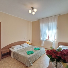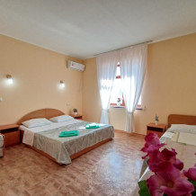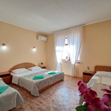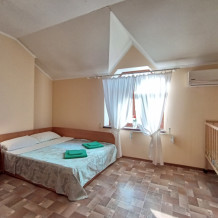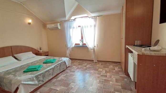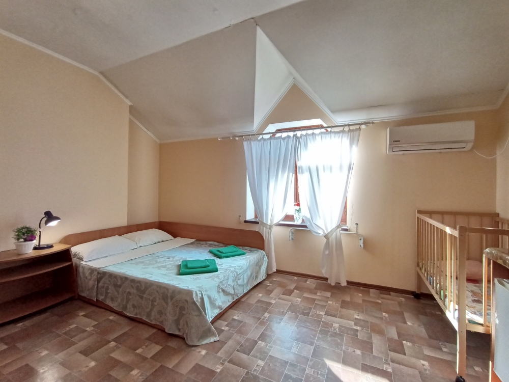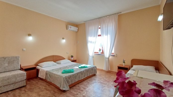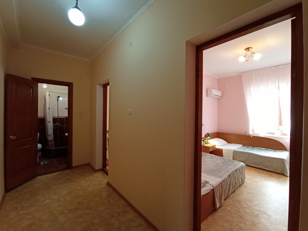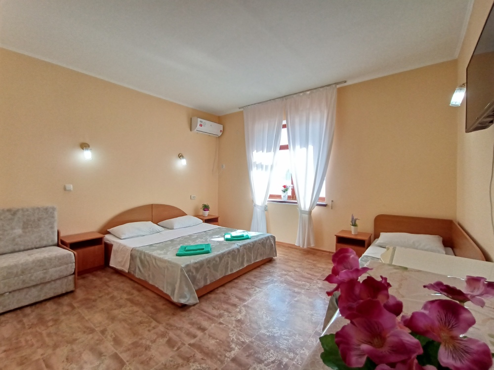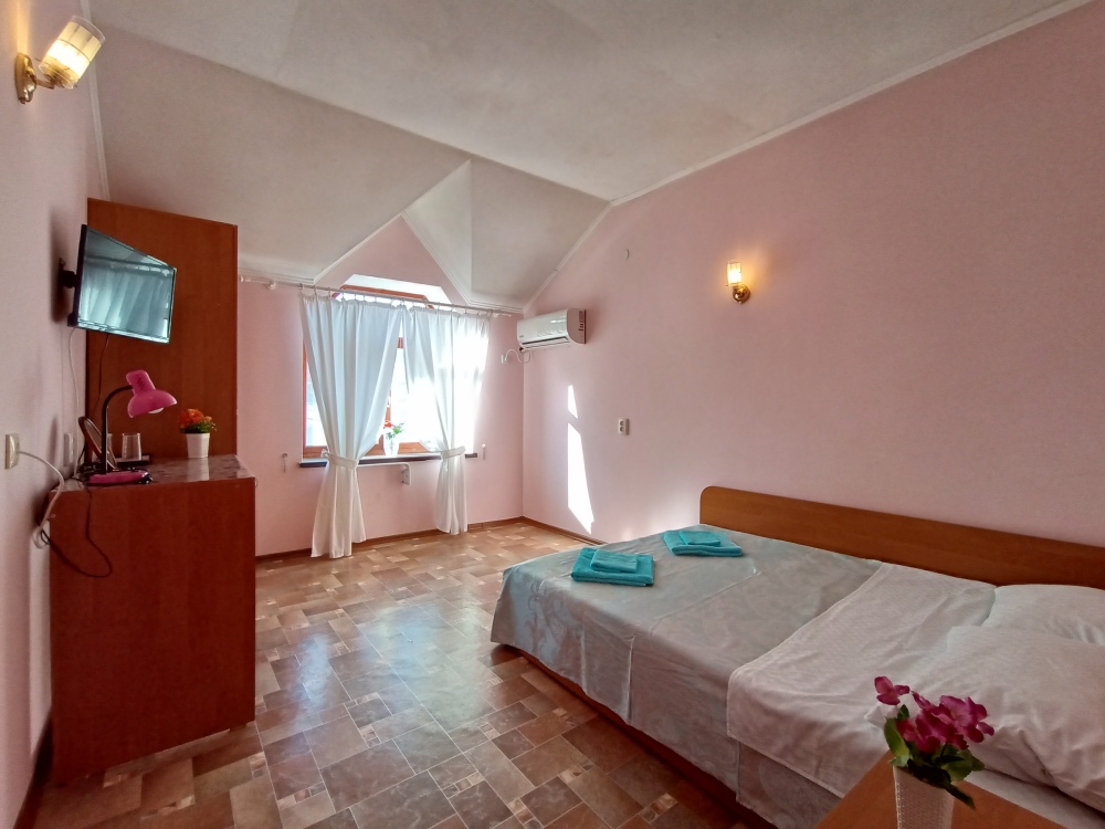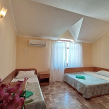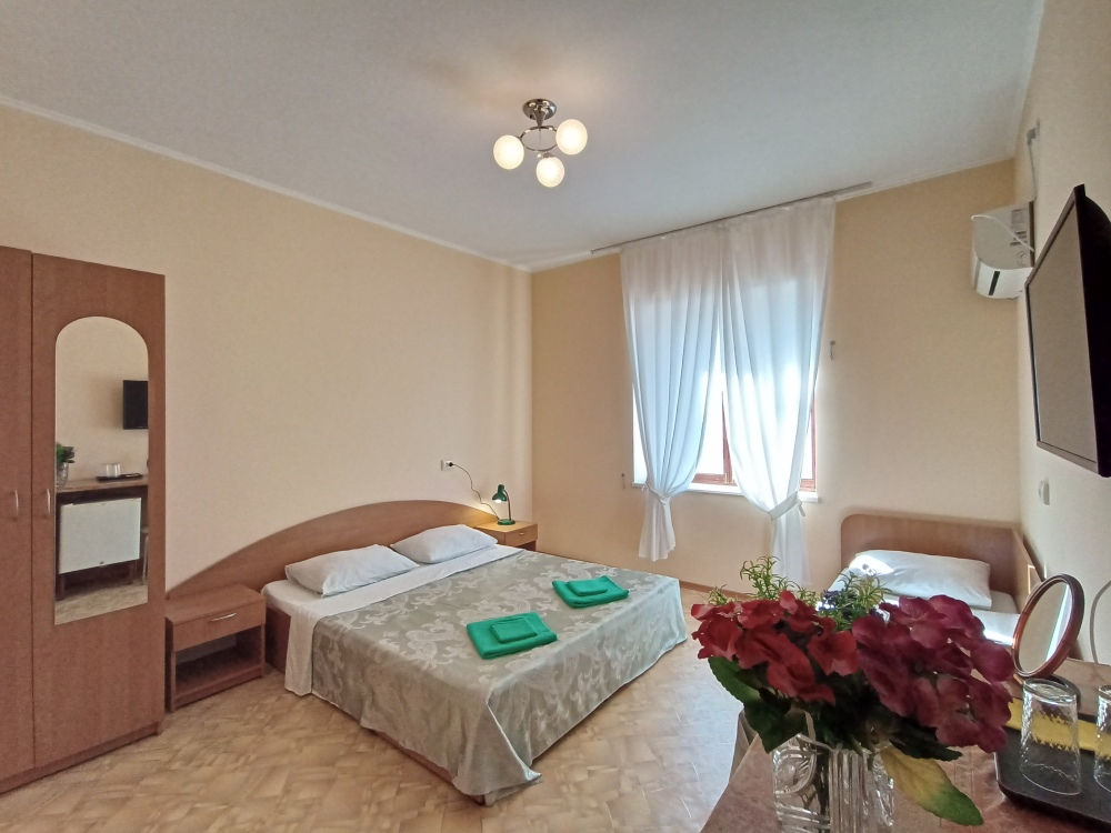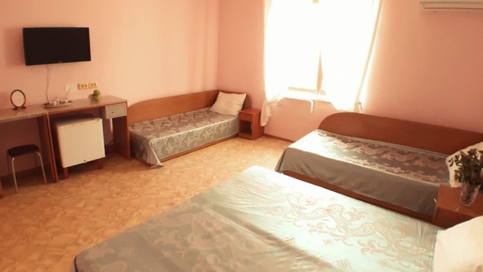 Гостевой дом находится в поселке Береговое (7 км. от Феодосии). Наши гости размещаются в, двух, трёх, четырёхместных однокомнатных, и трёх, четырёх, пяти и шестиместных двухкомнатных номерах. В каждом номере имеется сан. узел (душ, туалет, умывальник), кондиционер, холодильник, телевизор, индивидуальный гостиничный сейф, напольный вентилятор, фен. На окнах москитные сетки. Горячая и холодная вода – подаются круглосуточно. Бесплатный доступ к интернету (WI - FI).