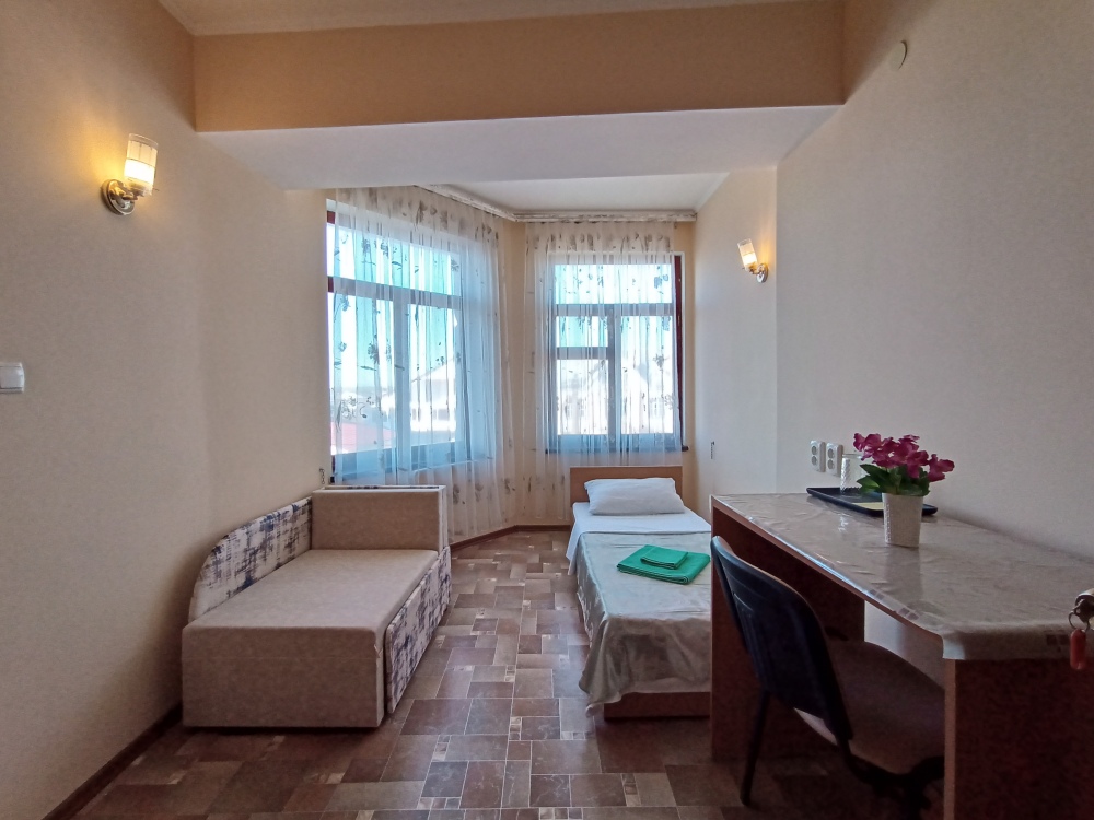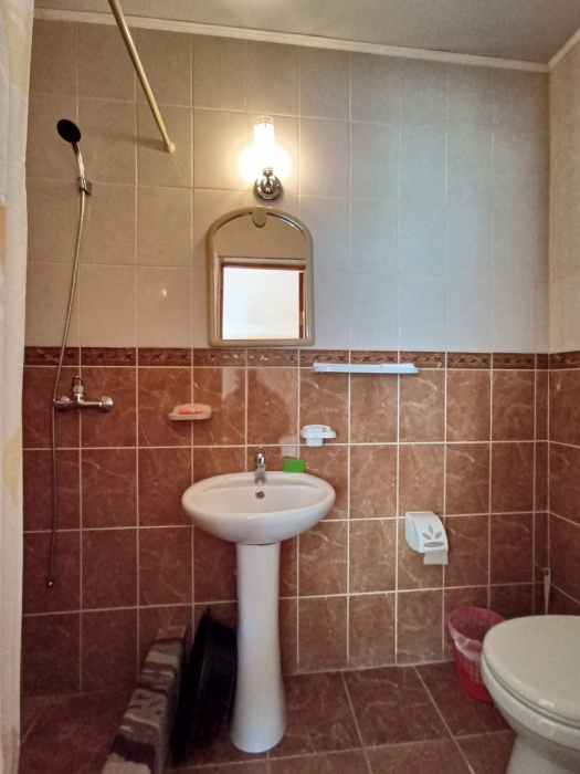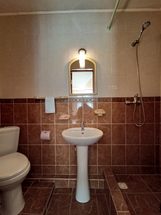 В номере имеется сан. узел (душ, туалет, умывальник), индивидуальный гостиничный сейф, кондиционер, холодильник, телевизор, напольный вентилятор, фен. На окнах москитные сетки. Горячая и холодная вода – подаются круглосуточно. Бесплатный доступ к интернету (WI - FI).