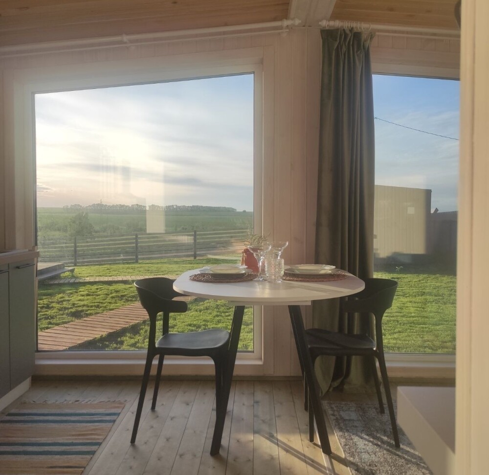 На территории всего 2 дома: двухместный и четырёхместный, оба выполнены в Скандинавском стиле. Дома оснащены всем необходимым для комфортного проживания в том числе кухня оборудована бытовой техникой, посудой.