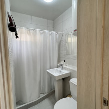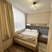 Постельное белье, утюг, гладильная доска, полотенца; мойка, СВЧ, мультиварка, посуда; шкаф , тумбочка прикроватная, стол, стулья.