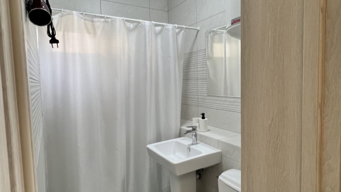 Утюг, гладильная доска, два телевизора; крытый дворик с мягким уголком, стол, стулья.