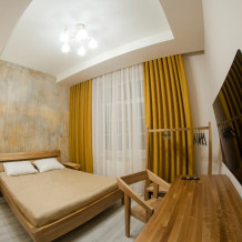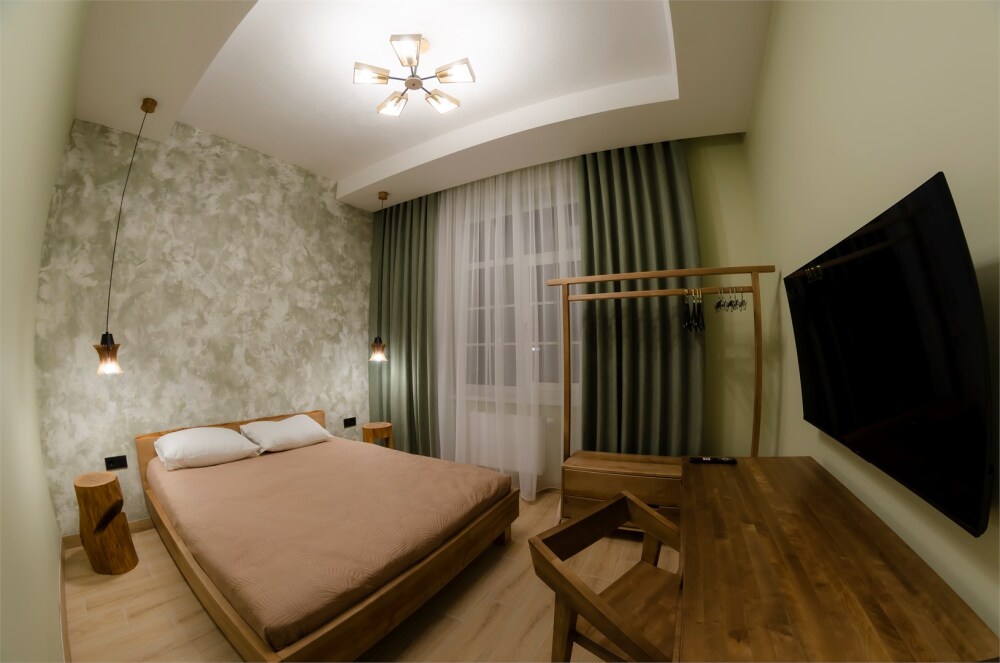 Всего в отеле 16 номеров нескольких категорий: Комфорт, Семейный, Улучшенные и Апартаменты. В каждом номере есть бесплатный wi-fi и smart tv. Ванная комната оборудована душевой зоной, феном и набором полотенец. Номера семейный и апартаменты оснащены собственной кухней, где есть все необходимое для приготовления пищи: холодильником, микроволновой печью, электрическим чайником и посудой.