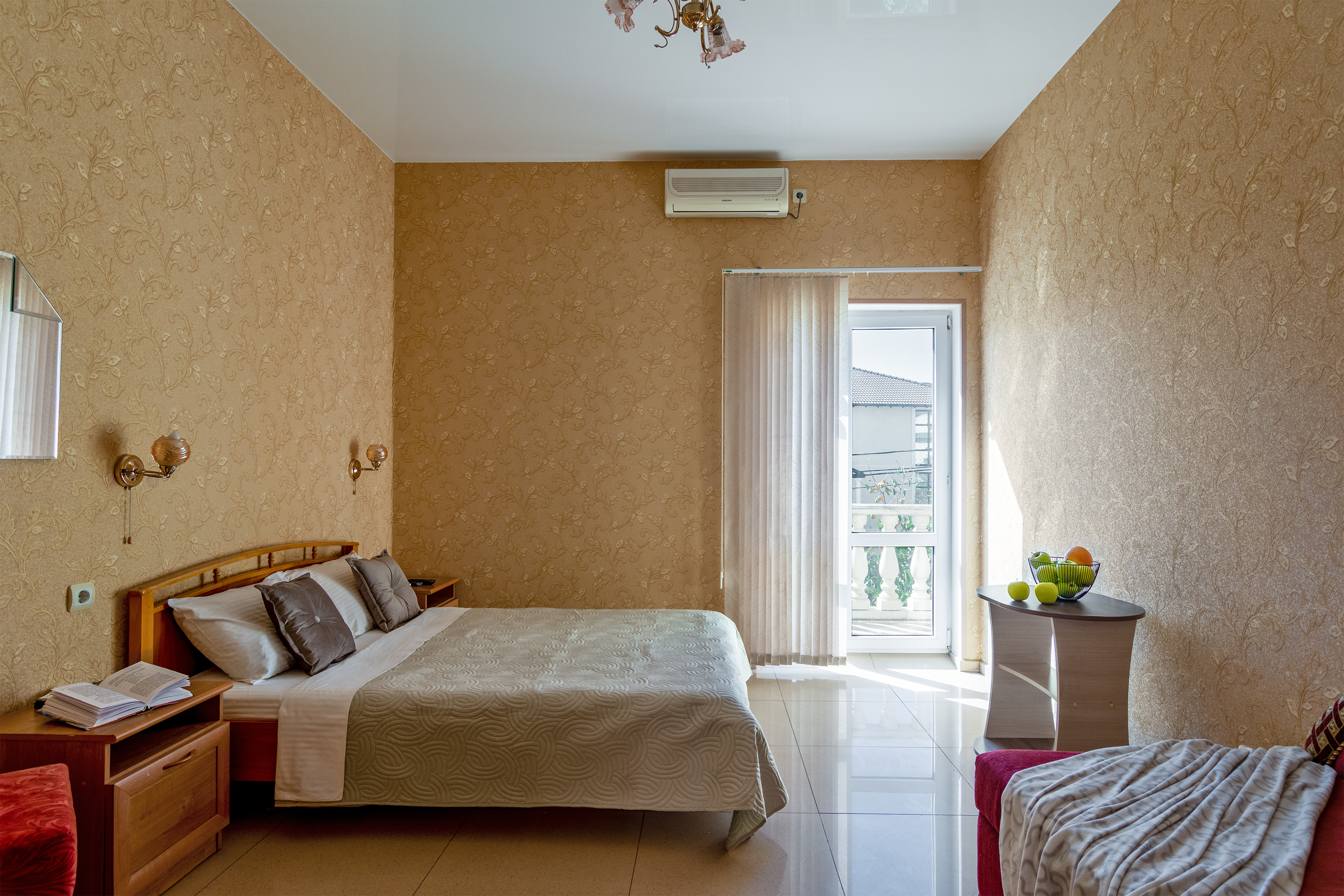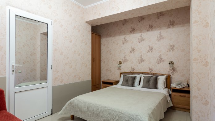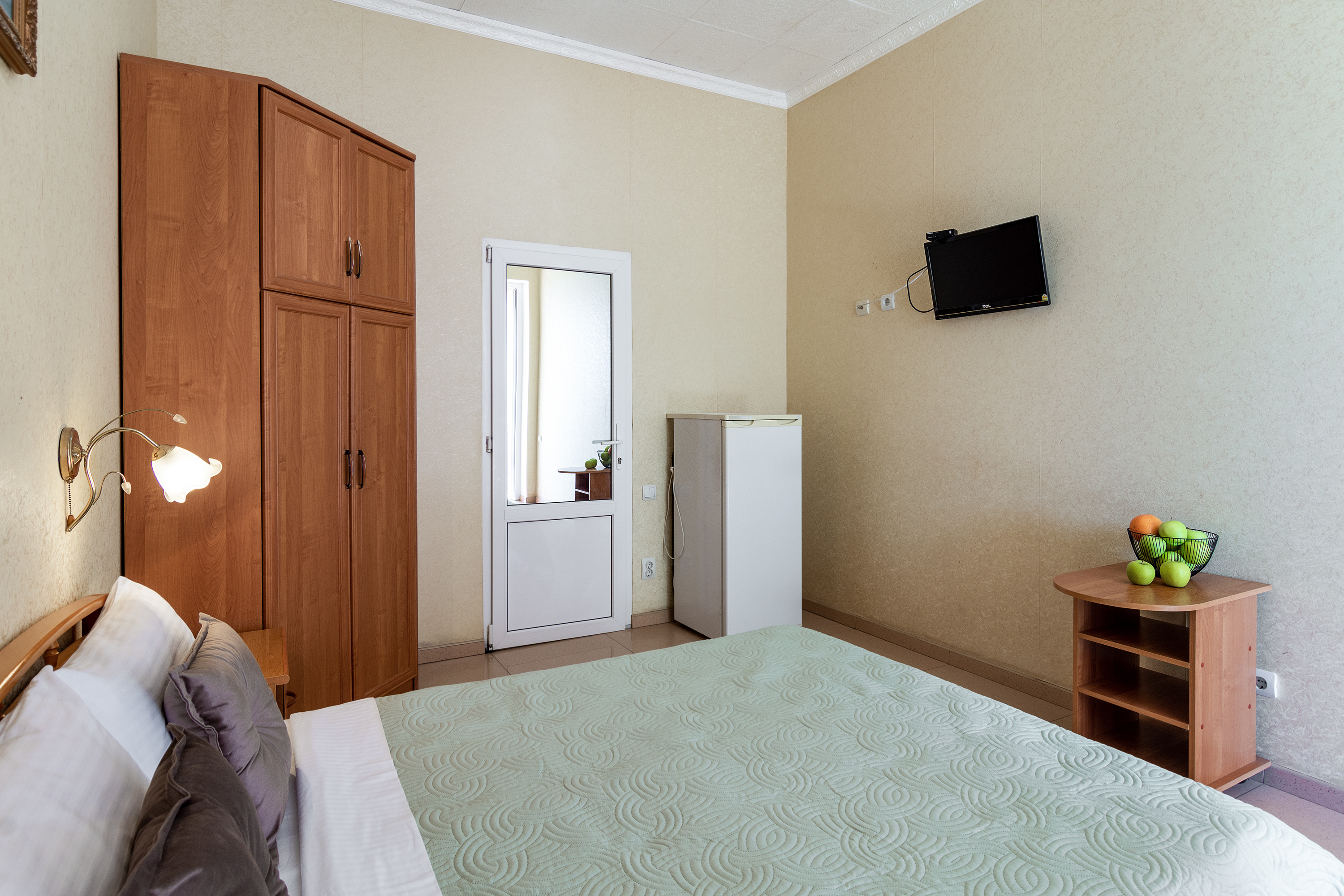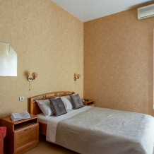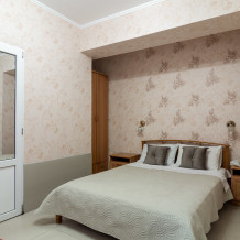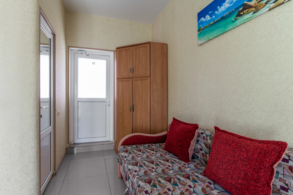 Трехместный номер категории стандарт, сплит-система, холодильник, телевизор, душ, туалет. Кровать двухспальная, диван. В вашем распоряжении кухня, стиральная машинка, гладильная доска. Работает Wi-Fi.