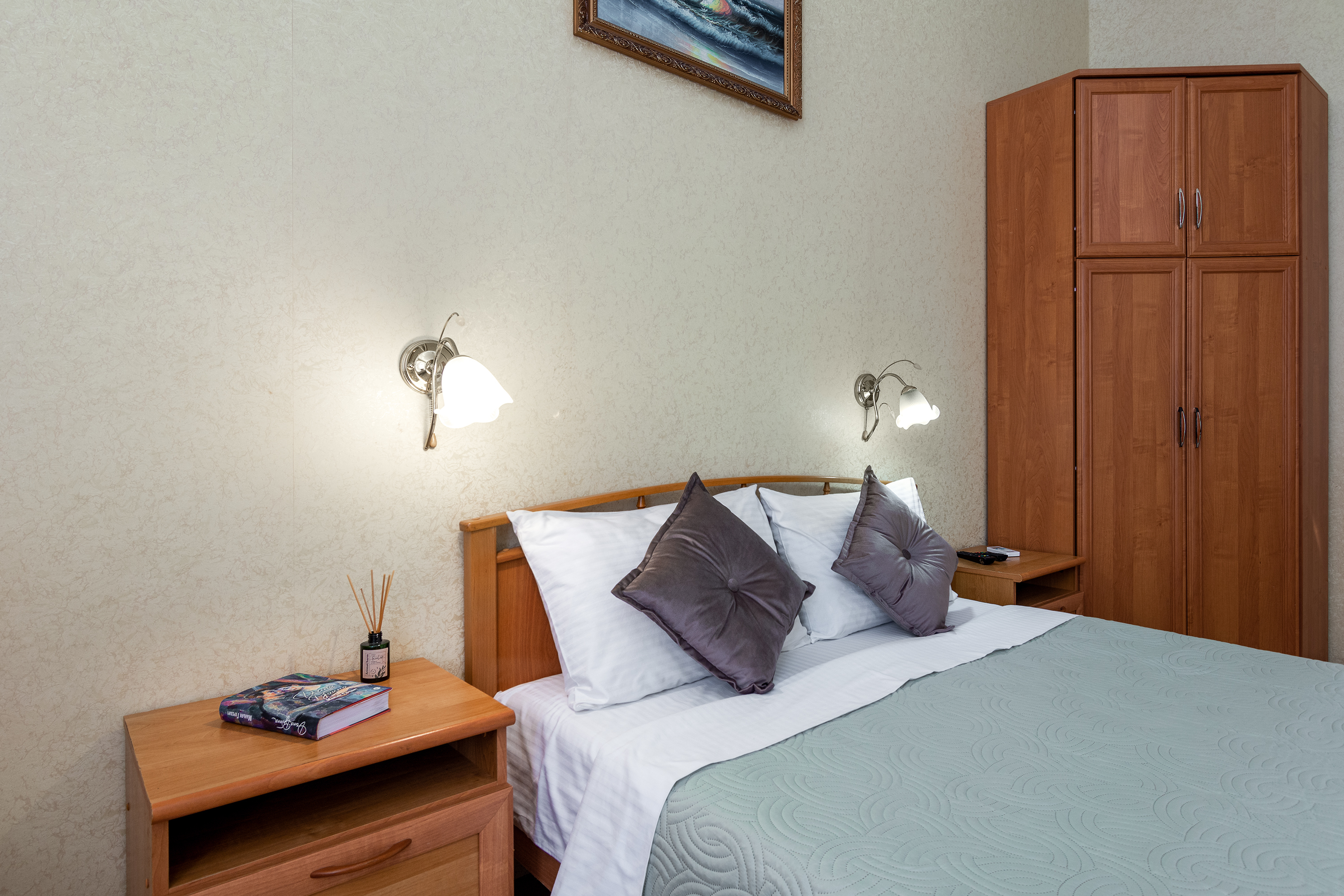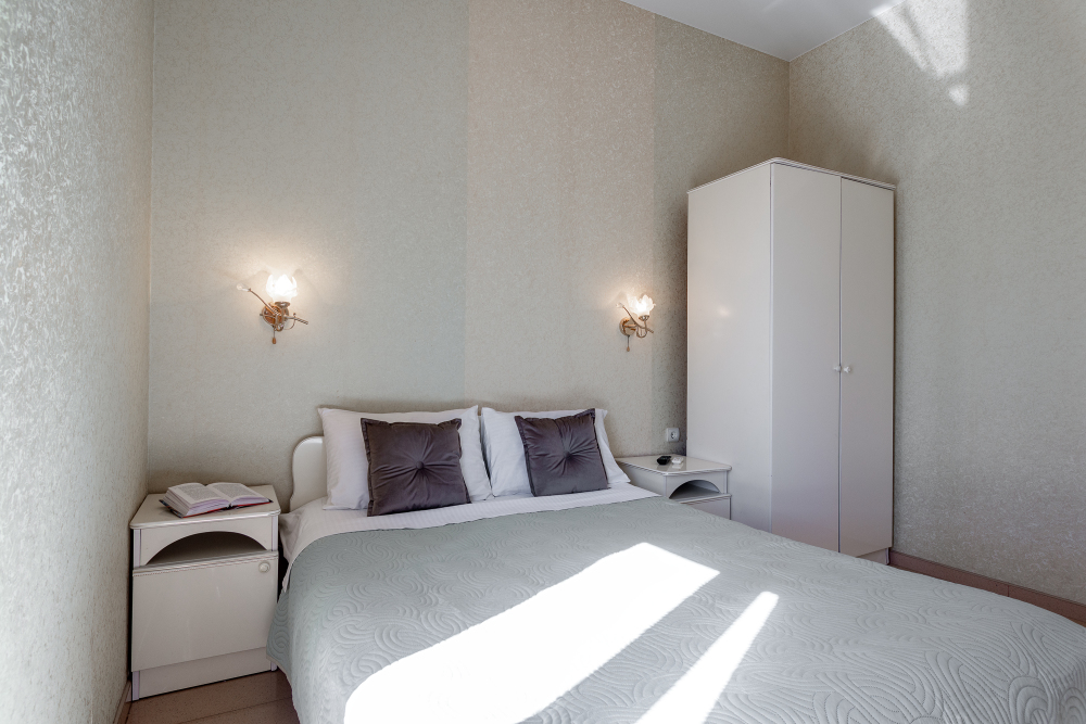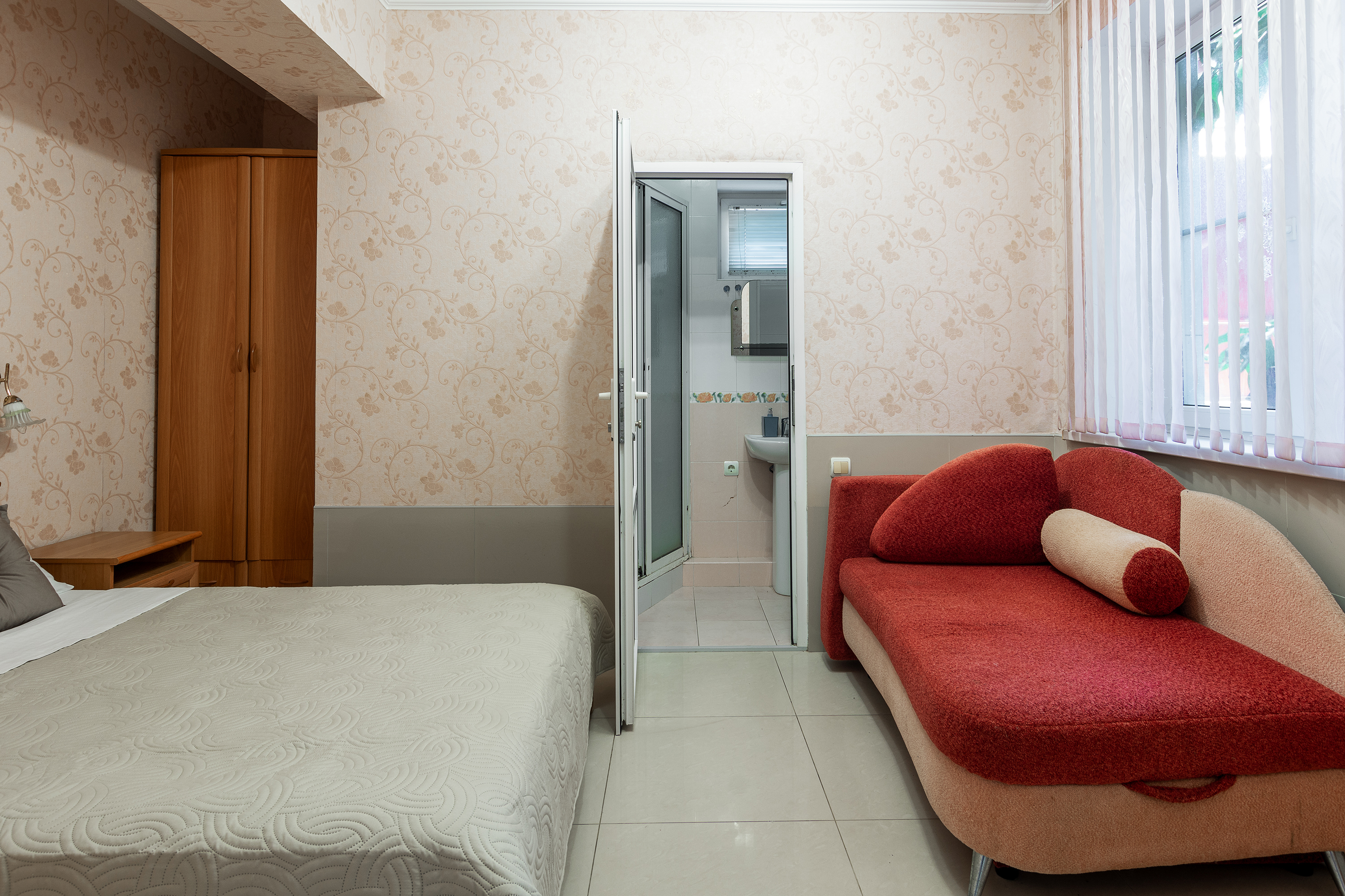 Трехместный номер категории стандарт, сплит-система, холодильник, телевизор, душ, туалет. Кровать двухспальная, диван. В вашем распоряжении кухня, стиральная машинка, гладильная доска. Работает Wi-Fi.