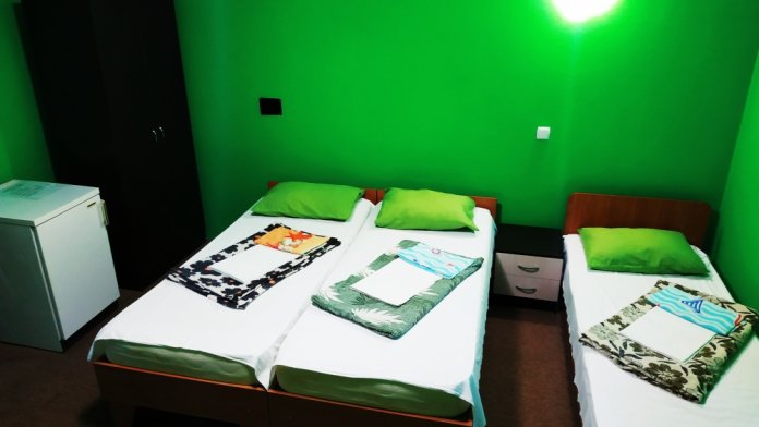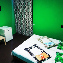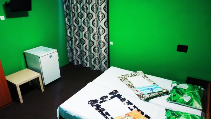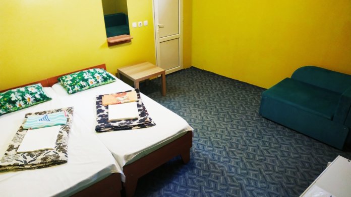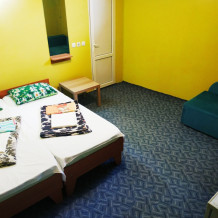 4-местный номер оборудован: тремя односпальными кроватями (с ортопедическими матрасами) и раскладным диваном, современная сантехника, кондиционер, холодильник, шкаф, журнальный столик, стулья, TV, WI-FI.