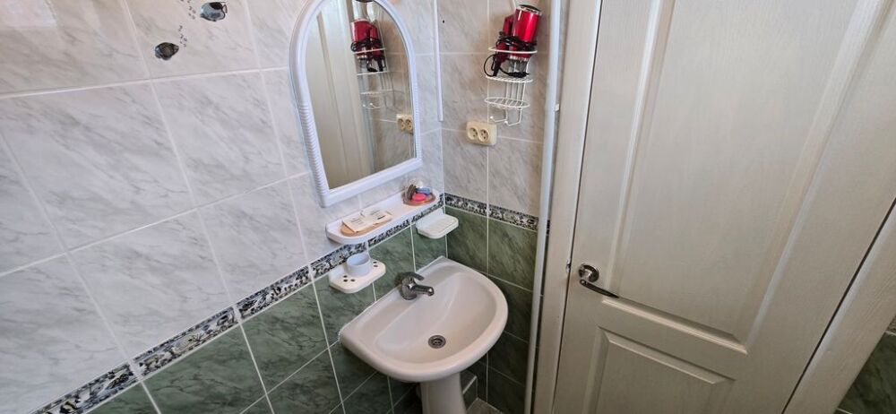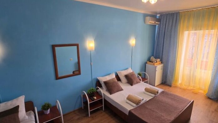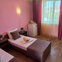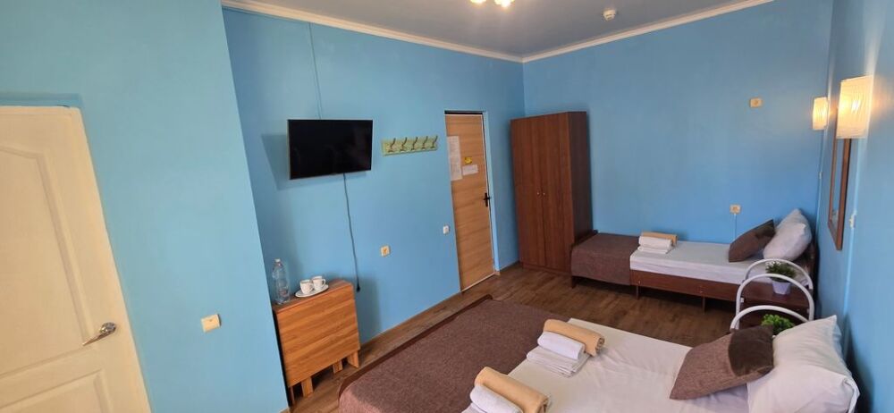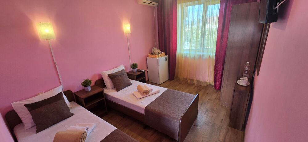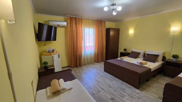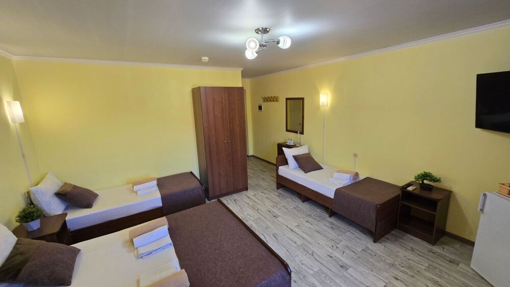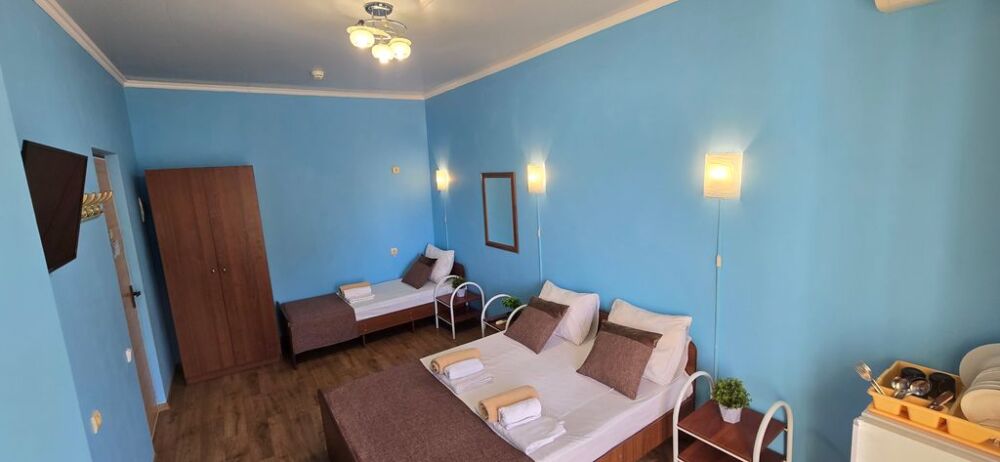 В гостевом доме 17 номеров: двух, трех и четырехместные. В номерах: двуспальная или односпальные кровати, шкаф для одежды, тумбочки, стол-книжка, телевизор, кондиционер, холодильник, сейф, фен, современный санузел с душем в номере.