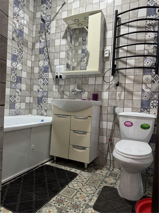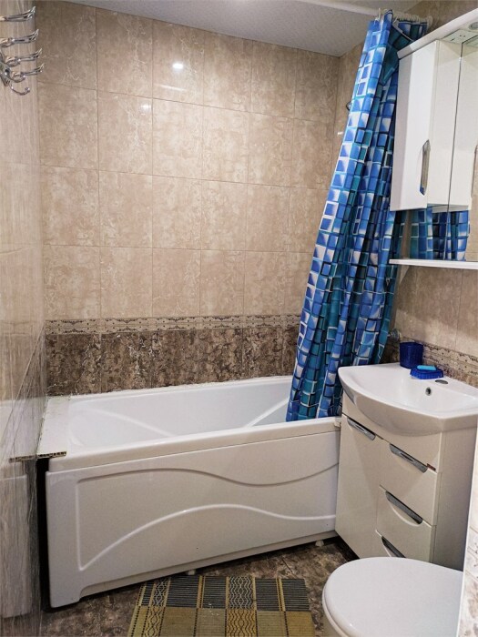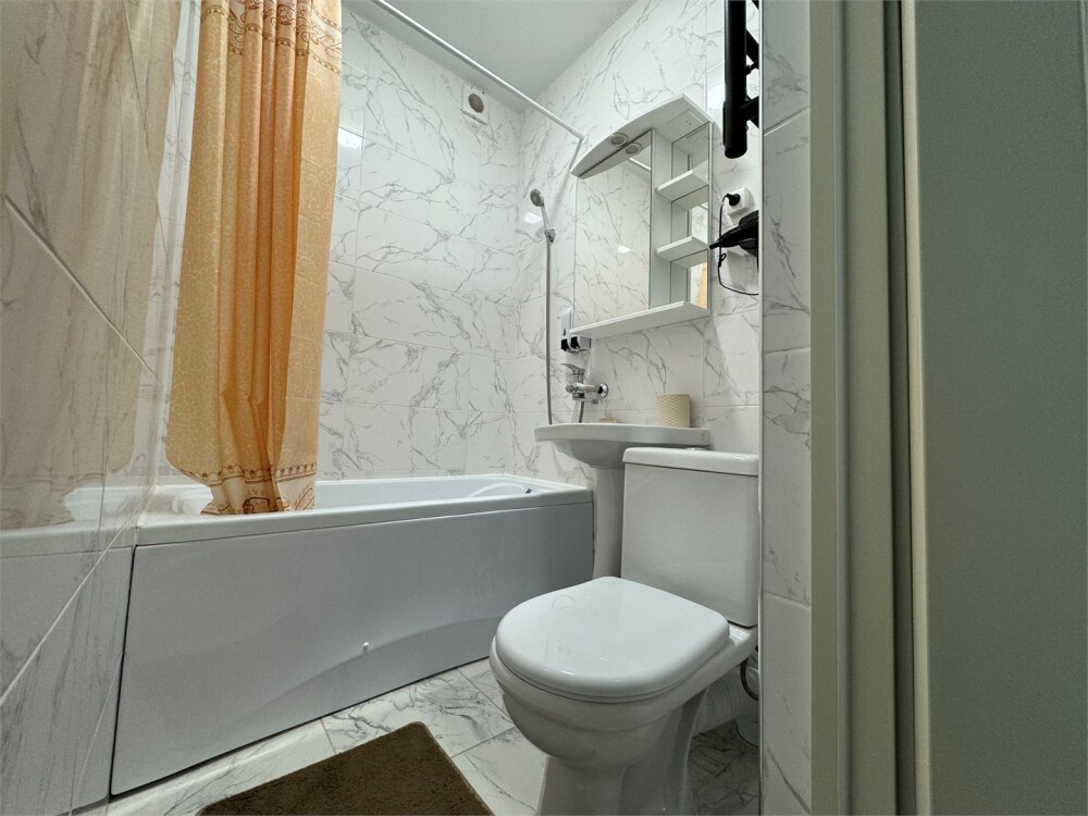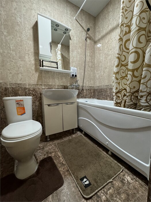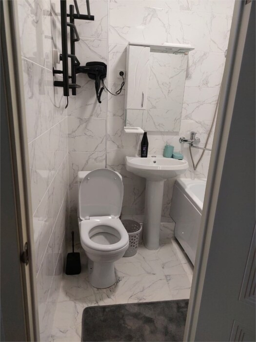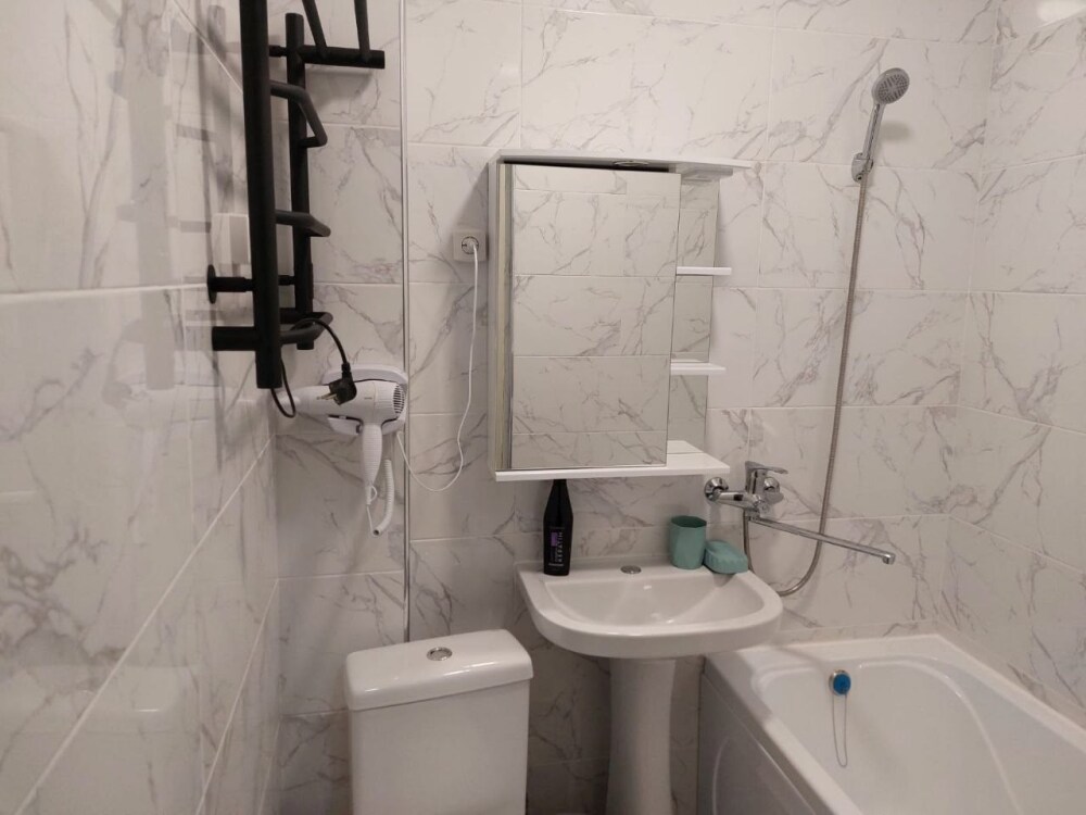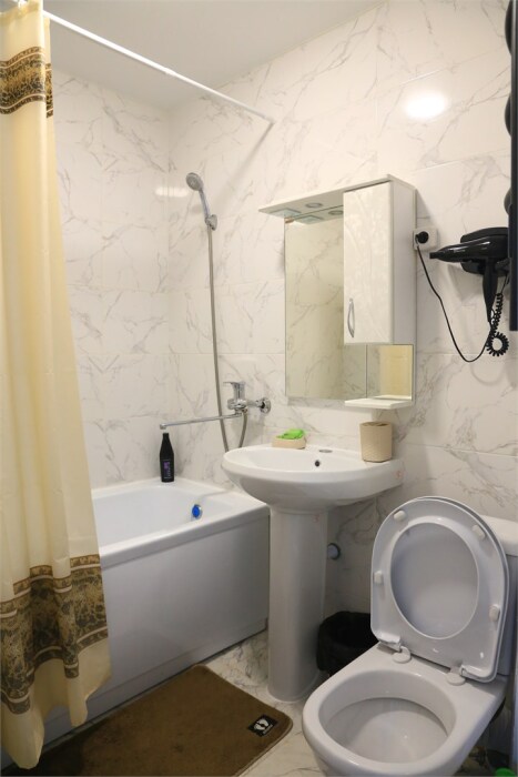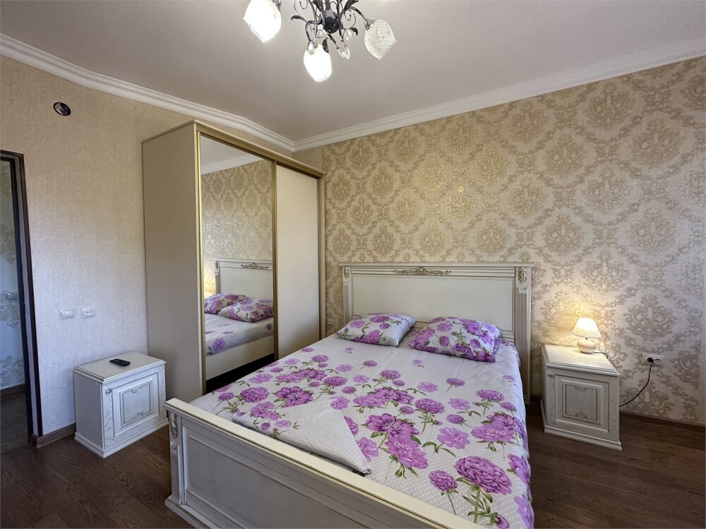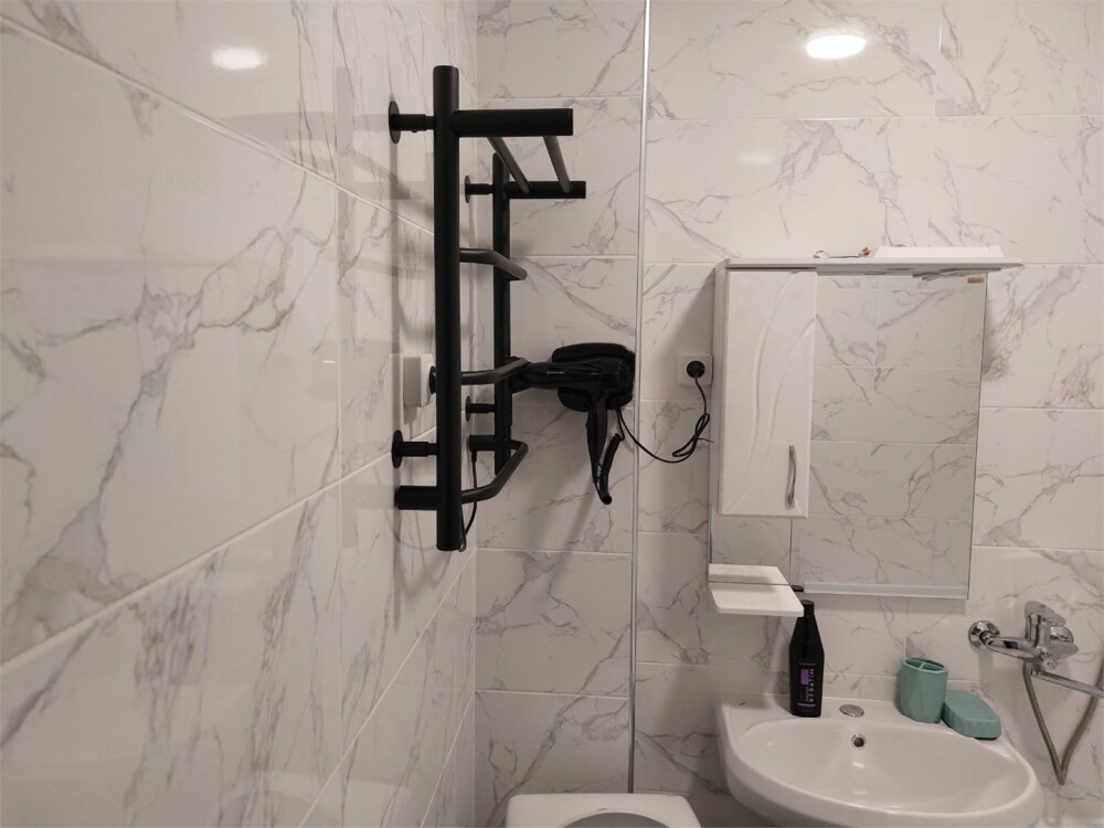 Номер с прихожей и большой комнатой. В номере есть межкомнатная дверь, разделяющая спальную зону и прихожую, своя ванная и туалет. Имеется ванна с душем, полотенцесушитель, фен, полноценный шкаф для одежды и обуви. Основное спальное место - кровать 2*2, дополнительно есть диван-кровать со спальным местом 1*4*1.9. В комнате большой smart-телевизор, беспроводной интернет, электрический чайник, чайный столик и минимальный набор посуды.