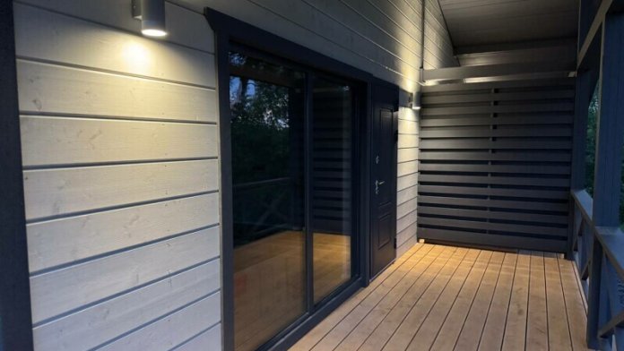 Для размещения гостям предлагают уютные дома площадью 31м2 с двуспальной кроватью и дополнительными местами на диване для до 4-х человек. Кухня с бытовой техникой, ванная с душевой кабиной и стиральной машиной. Панорамные окна с видом на озеро и терраса для отдыха на свежем воздухе. В каждом доме есть дополнительная система звукоизоляции.