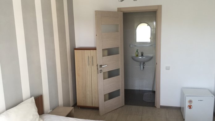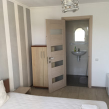 Номер расположен на 1 этаже. В номере две комнаты-спальни, есть кондиционер, ТВ с плоским экраном, платяной шкаф, холодильник, чайник. В каждой комнате свой санузел (туалет-душ), двухспальная кровать (возможны 2 раздельные кровати), интернет Wi-Fi. Вместительность до 6 человек(с учетом дополнительных мест).