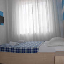 Номера располагаются на 2 и 3 этаже, отдельный санузел, первая комната - гостиная с мини-кухней, с диваном (2 спальных места), вторая - спальня с двухспальной кроватью (возможны раздельные кровати,2-3 спальных места), кондиционер, ЖК-телевизор, холодильник, эл. чайник,микроволновая печь.