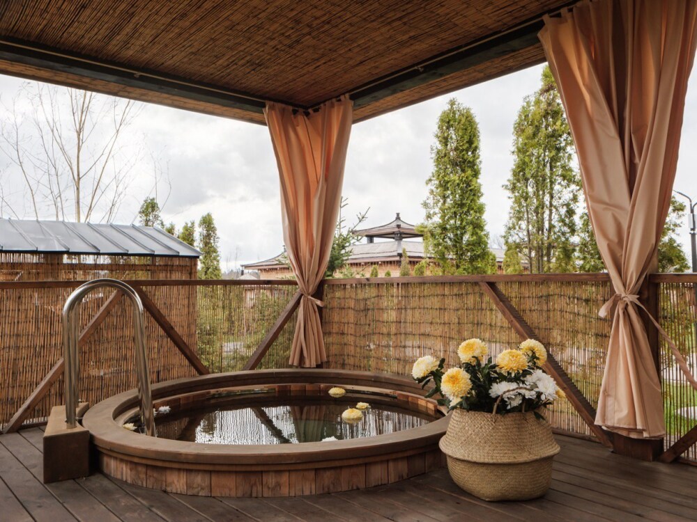 Sunrise Village предлагает широкий ассортимент услуг на любой вкус. У нас вы можете принять японскую купель фурако, посетить традиционную баню на дровах, SPA-салон и пройти сеанс массажа. Ресторан Seasons, расположенный на территории, предлагает гостям полезную и вкусную еду из натуральных фермерских продуктов. Блюда можно заказать на пикник или в номер. Кроме того, у нас, в отличие от других отелей, проводится аутентичная чайная церемония, организованная по всем дальневосточным канонам. В процессе чаепития гости могут насладиться напитком, созерцать природу и расслабиться в атмосфере гармонии и покоя.