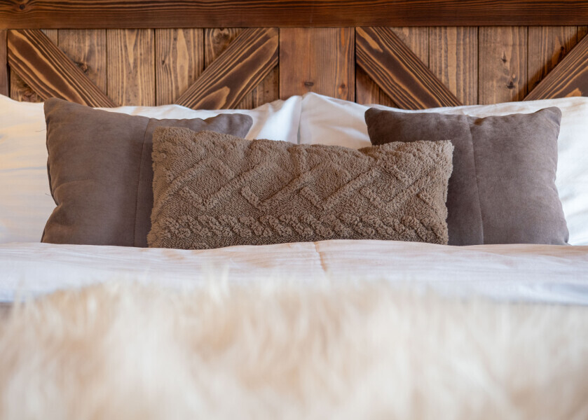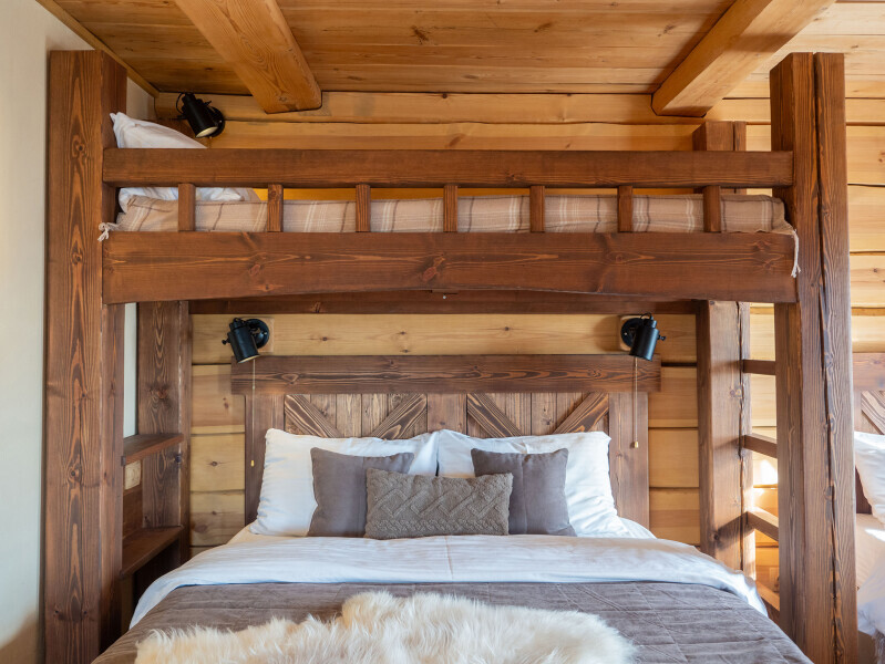 В спальной зоне расположились большая двуспальная кровать, односпальная и детская кровать на втором ярусе, любимое место маленьких детей. Все спальные места оснащены премиальными ортопедическими матрасами.