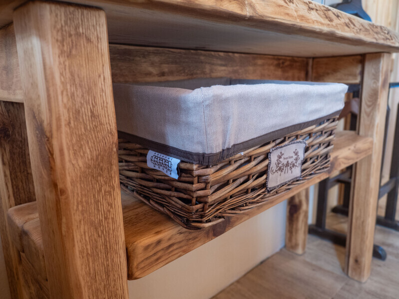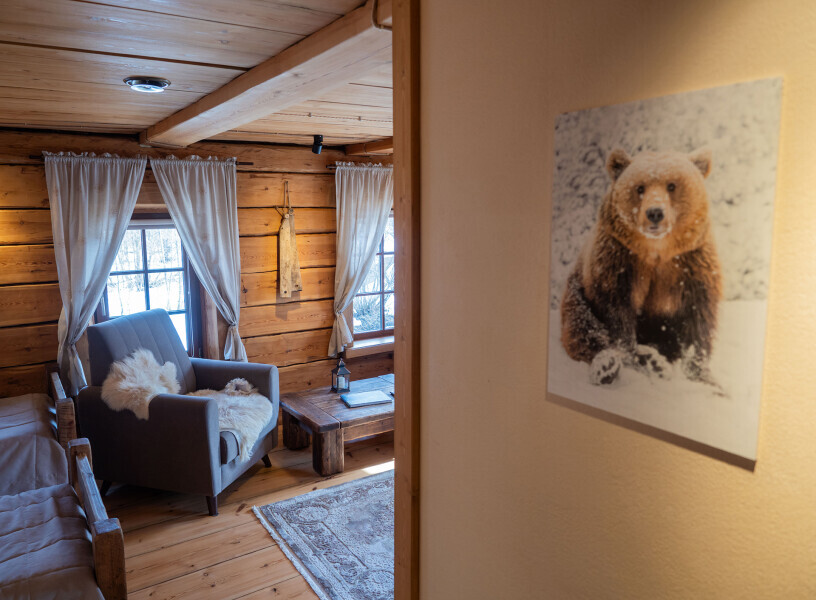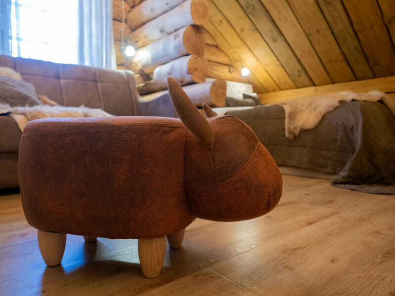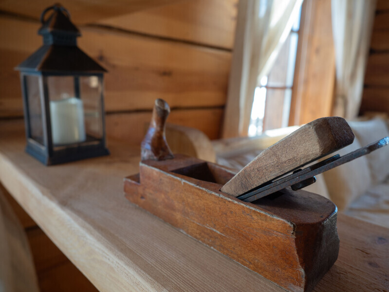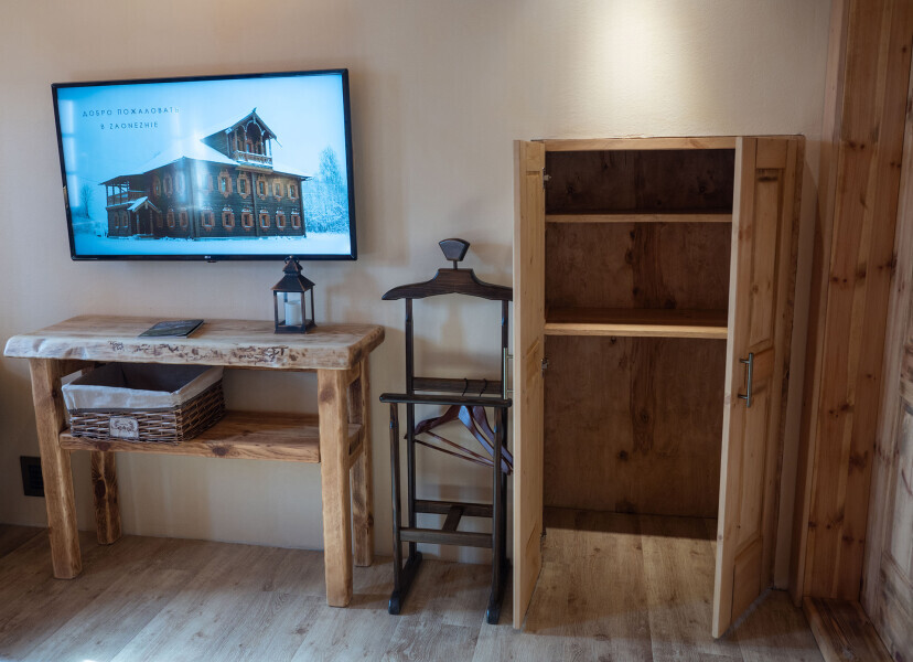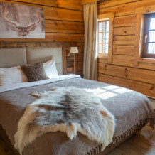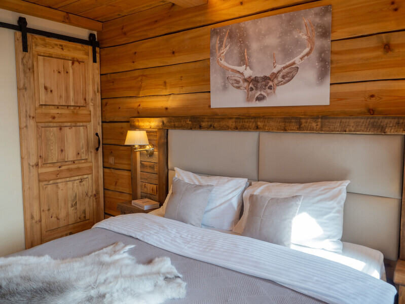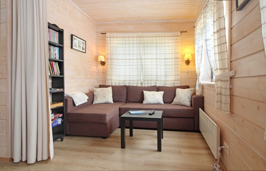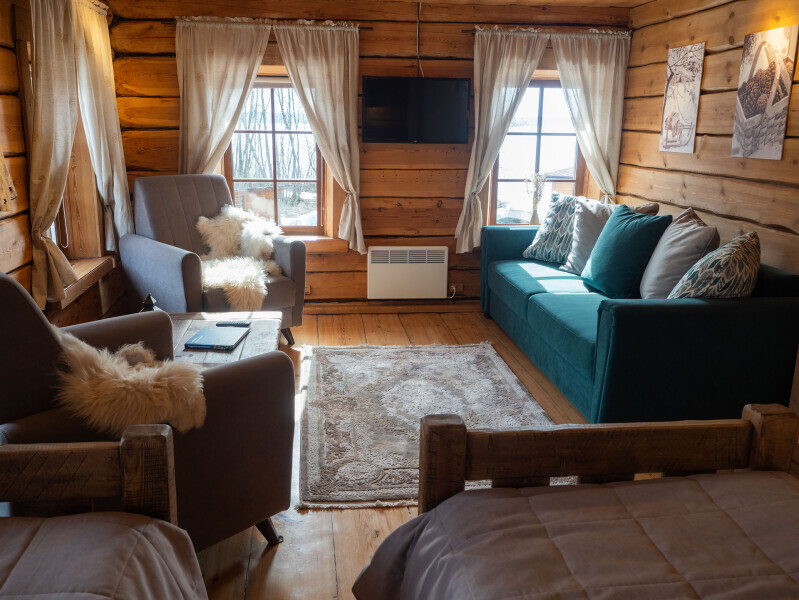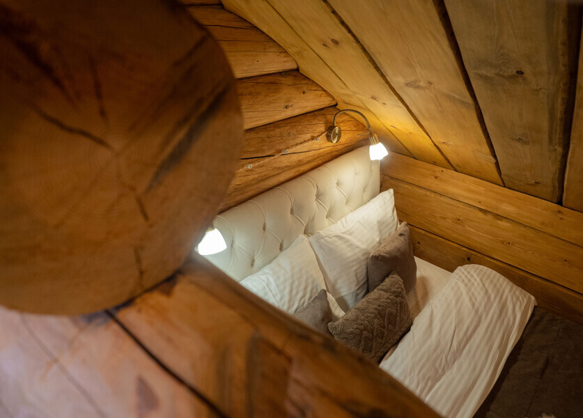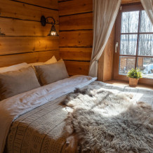 Наша светёлка оснащена большой кроватью с премиальным ортопедическим матрасом размера King Size и отлично подойдёт для семейной пары. В светлые карельские белые ночи о вашем сне позаботятся плотные шторы блэкаут.
