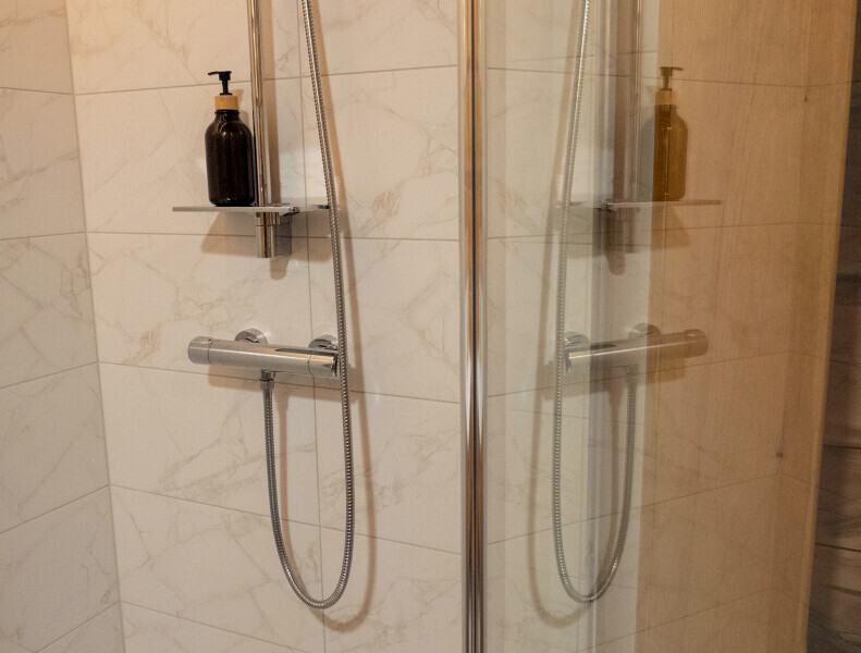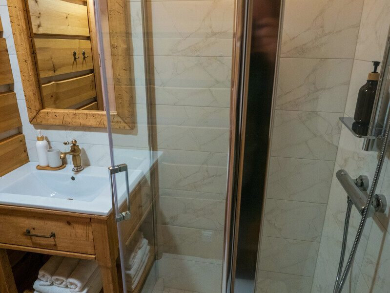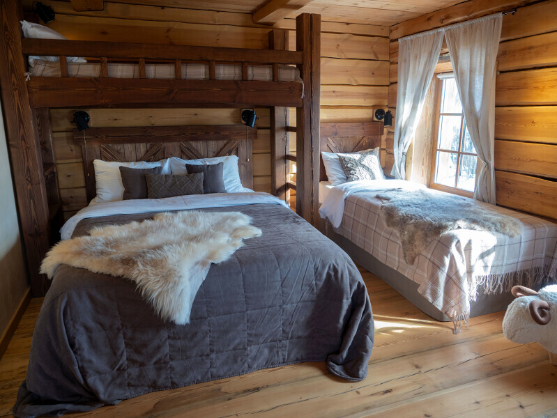 Все спальные места оснащены премиальными ортопедическими матрасами. Комната оборудована стильным современным санузлом с душем.