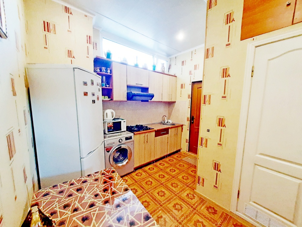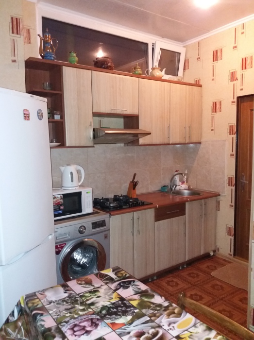 Кухня укомплектованная от чайной ложки, до двухкамерного холодильника, есть газовая плита, микроволновка, электро-чайник, стиральная машинка(автомат) ближайшие пляжи галечные, вся туристическая и развлекательная инфраструктура хорошо развиты и в шаговой доступности от дома. Инфраструктура: пляж галечный — 5 минут, набережная — 5 минут, центр города — 15 минут, центр развлечений — 5−10 минут, аквапарк — 10 минут, дельфинарий — 10 минут, рынок — 10 минут, магазин продукты — 5 минут, остановка маршрутки — 10 минут, аптека — 3−5 минут.