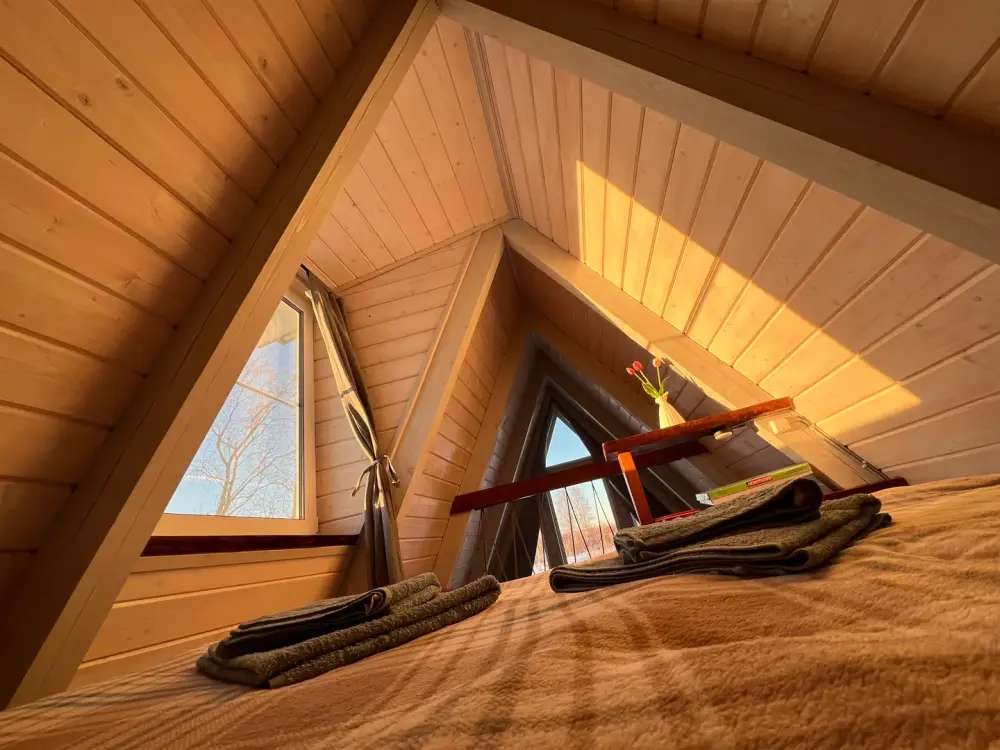 Дом рассчитан на 4 человека (двуспальная кровать на втором этаже и диван на первом).